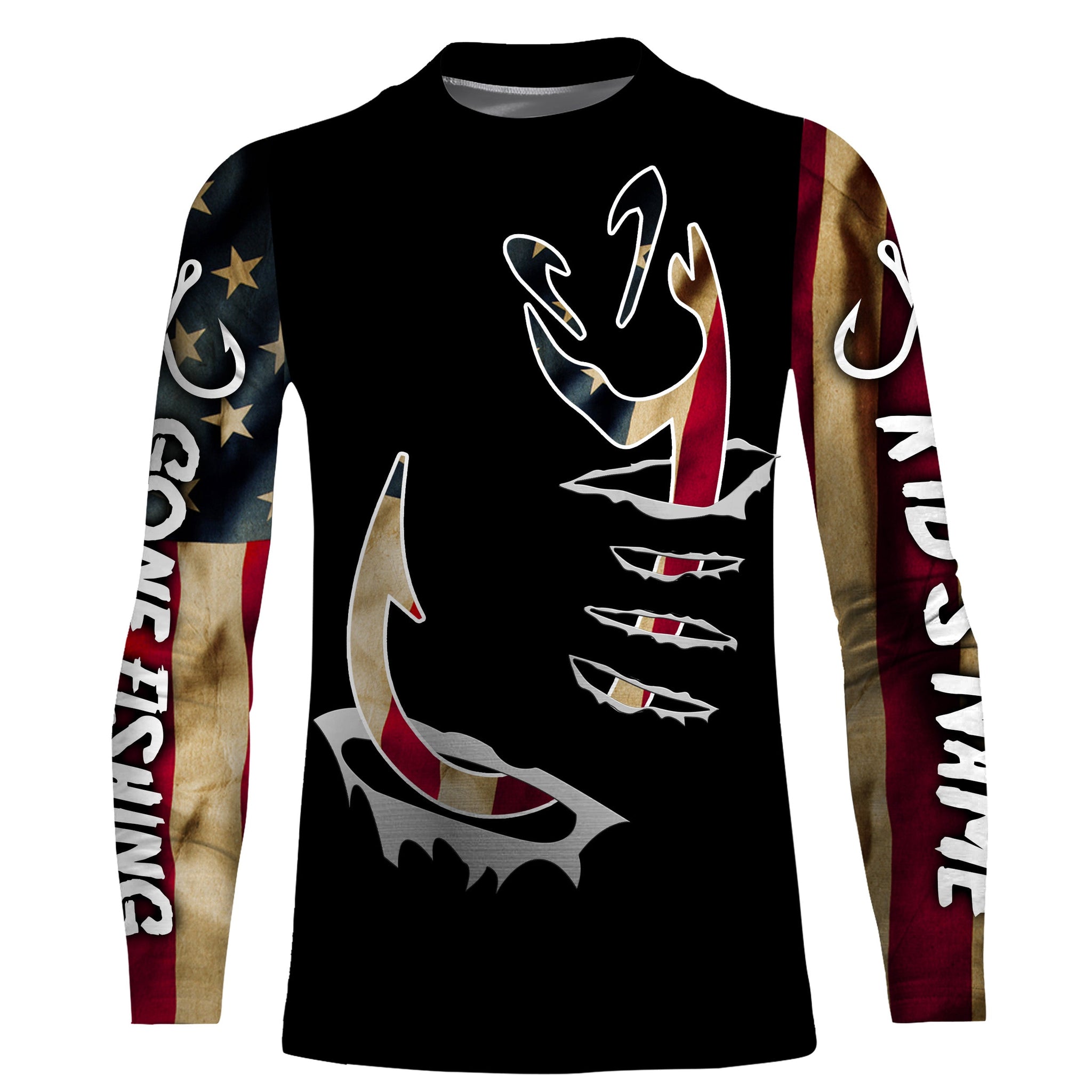 Fishing Hook 3D Retro American flag Tournament Fishing Shirt UPF30+, Personalized Fishing Gifts FSD3005