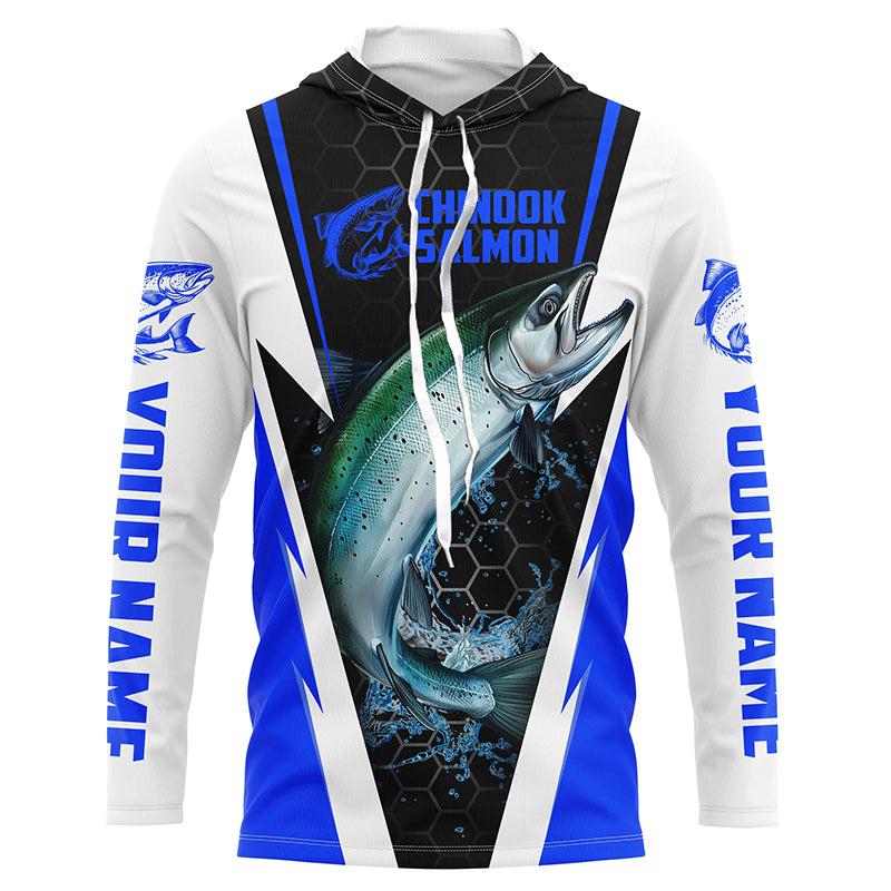 Custom Chinook King Salmon Fishing Jerseys, Salmon Long Sleeve Tournament Fishing Shirts | Blue IPHW6066