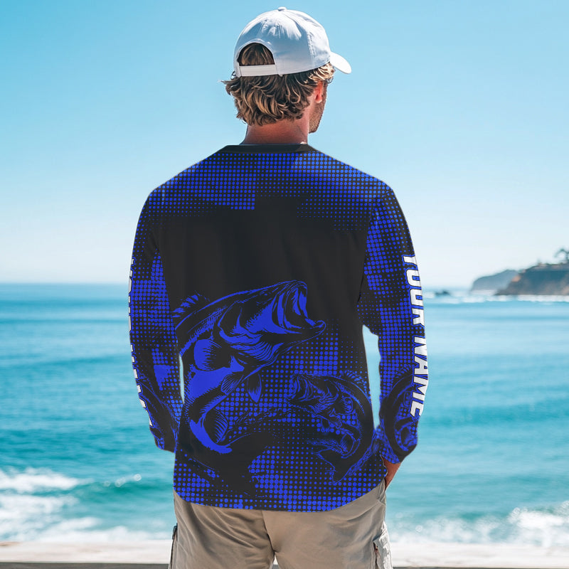 Largemouth Bass fishing jersey Custom UV protection performance bass fishing tournament shirts | Blue NQS9395