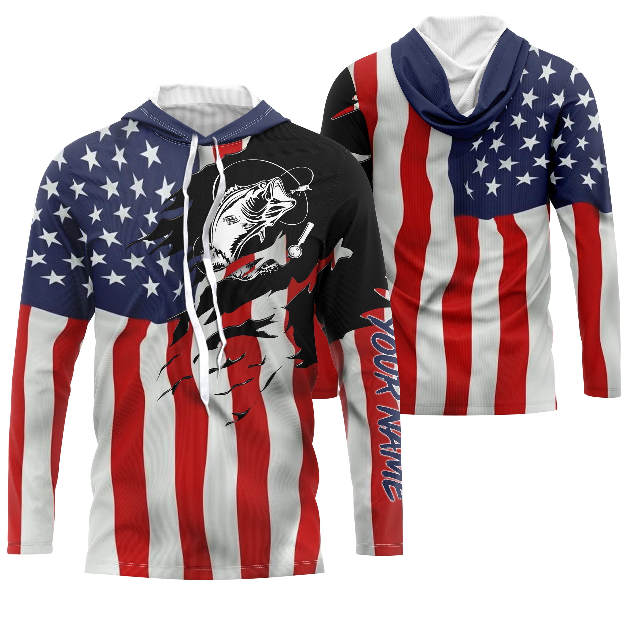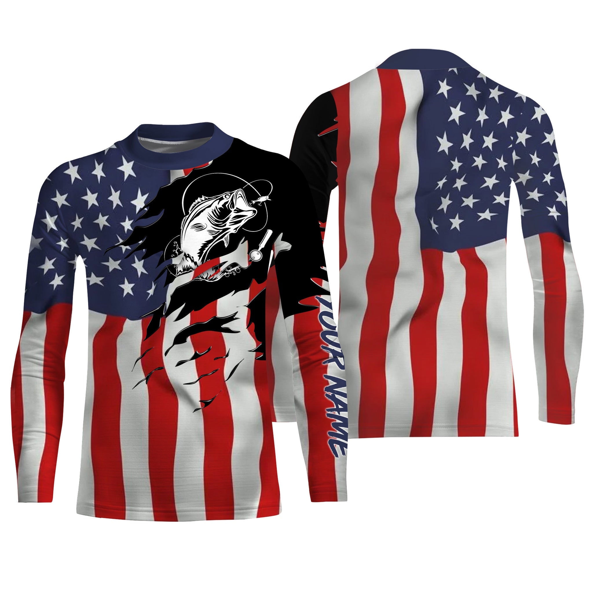 Largemouth bass fishing tattoos American flag patriotic fishing Custom Name 3D tournament fishing shirts UV protection UPF 30+ NQS2797