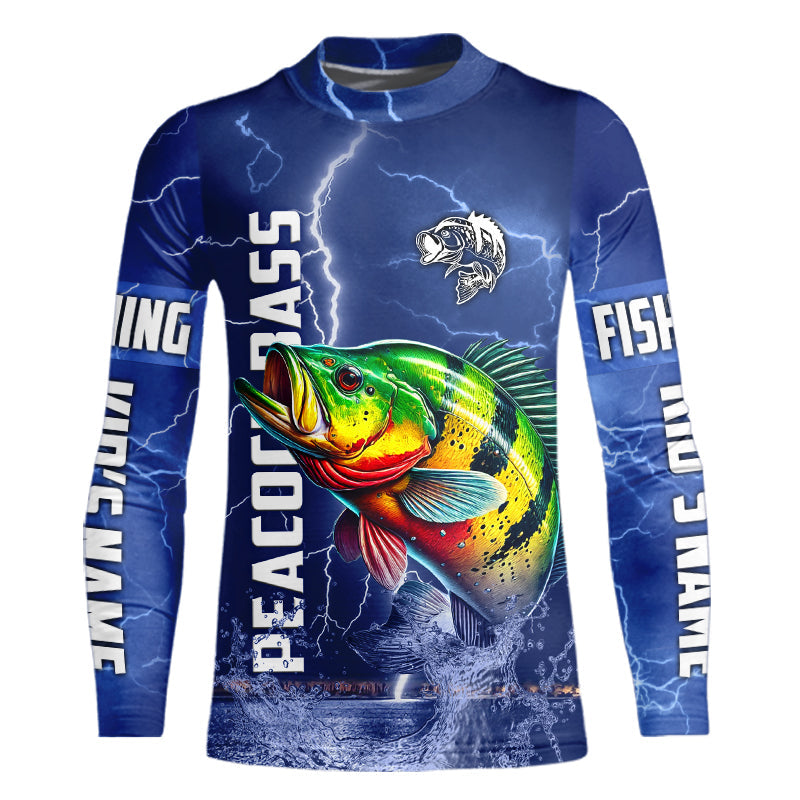 Peacock Bass Fishing blue lightning jerseys custom performance Long Sleeve tournament fishing shirts NQS9237
