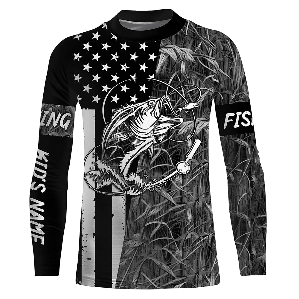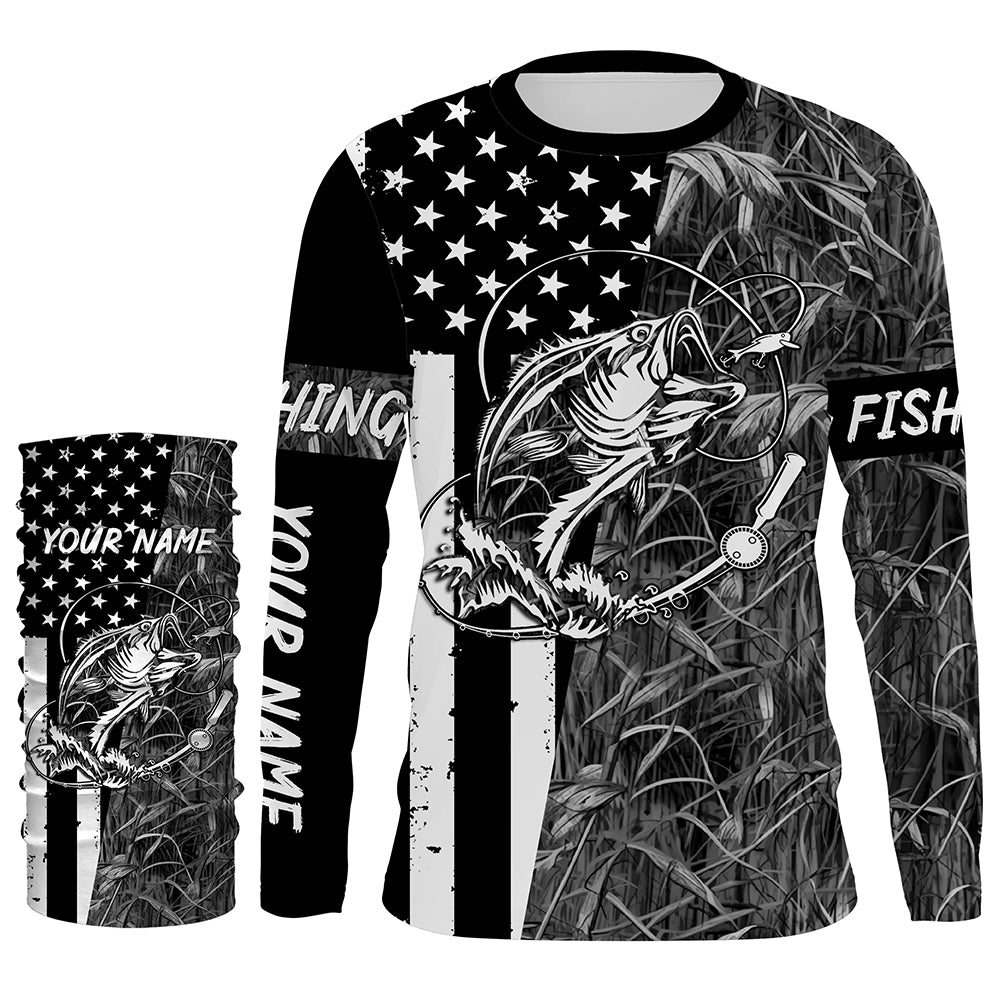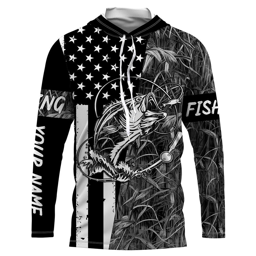 Bass Fishing American Flag patriotic gray Camo custom Performance Long Sleeve fishing shirt for angler NQSD98