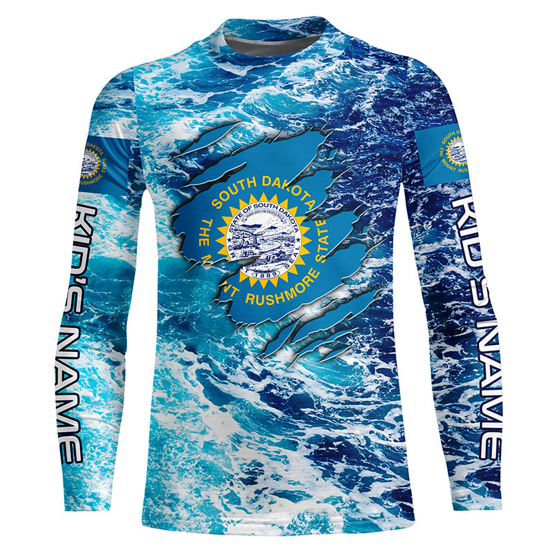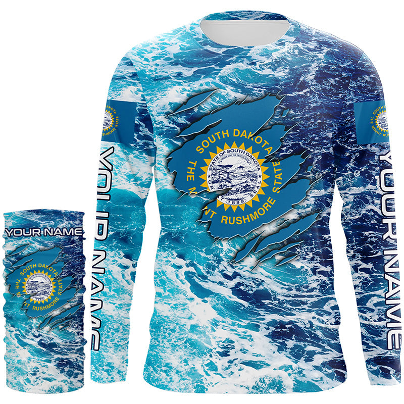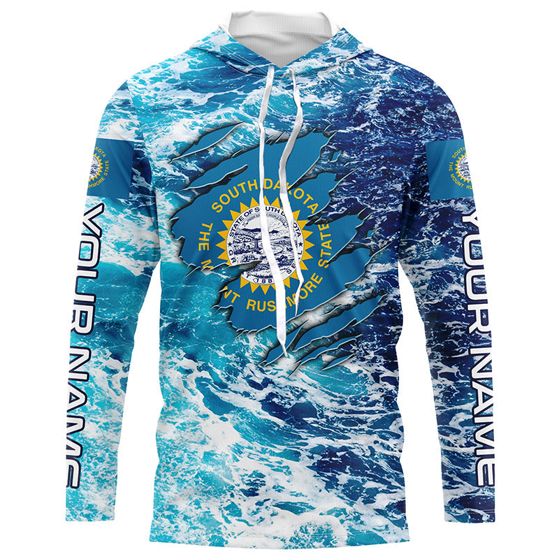 Blue sea wave ocean camo South Dakota flag patriot shirt Custom sun protection fishing shirts NQS8164