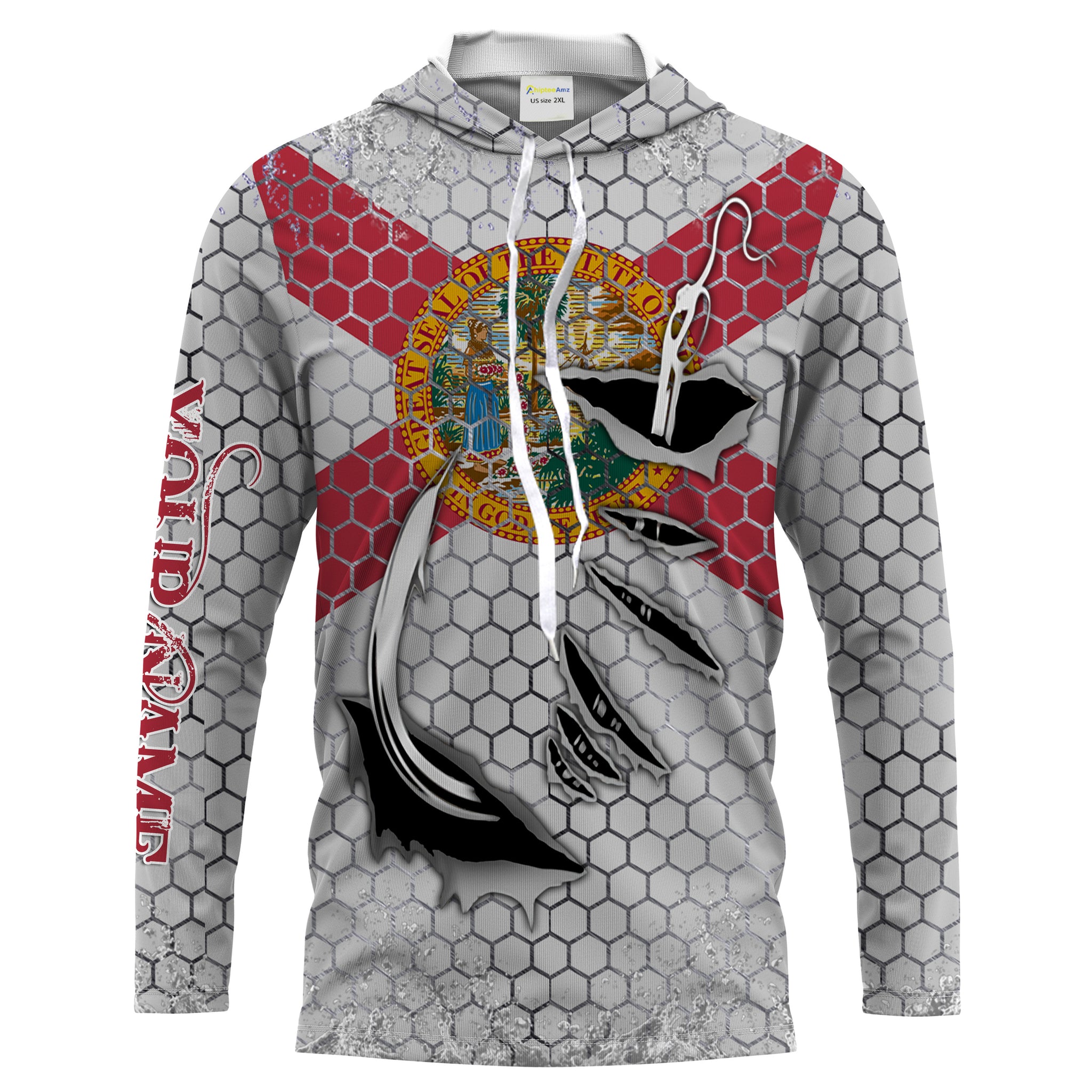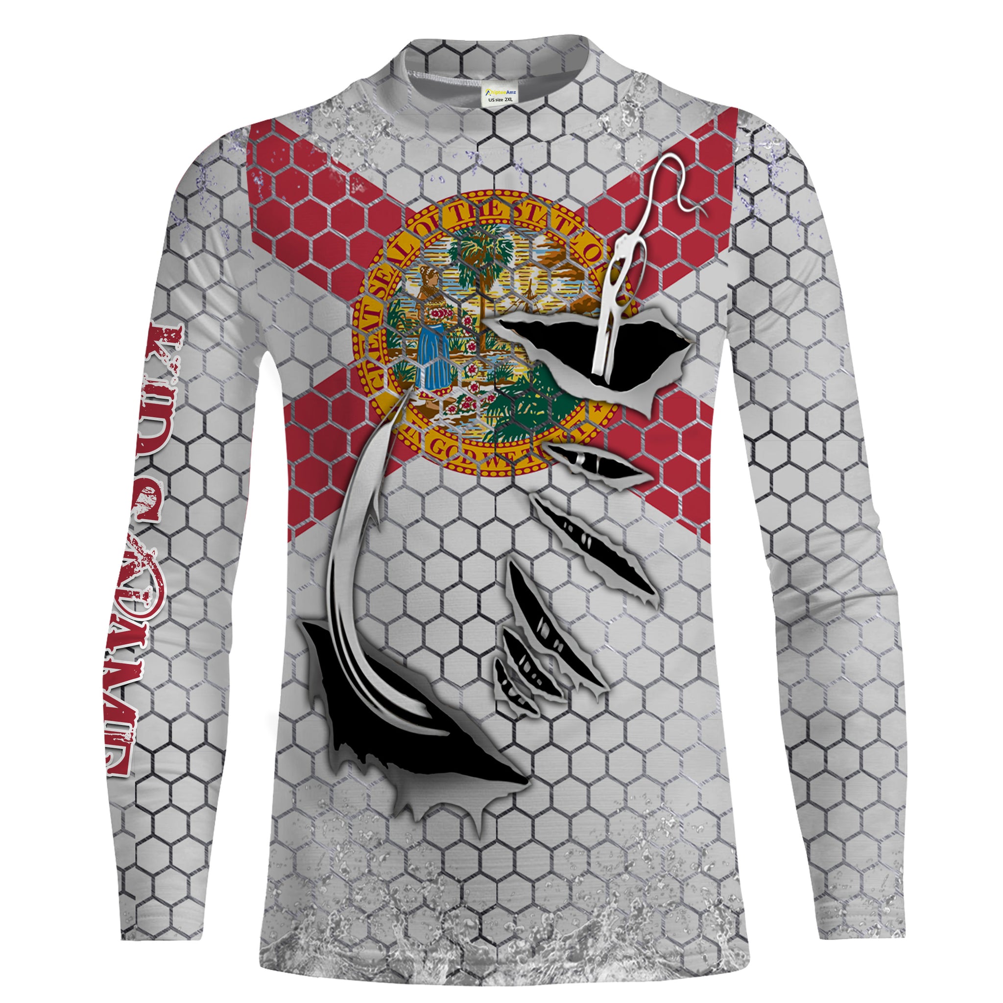 Custom Florida Flag Fishing Shirts, Florida Fish hook Long sleeve performance Fishing Shirts - IPHW1557