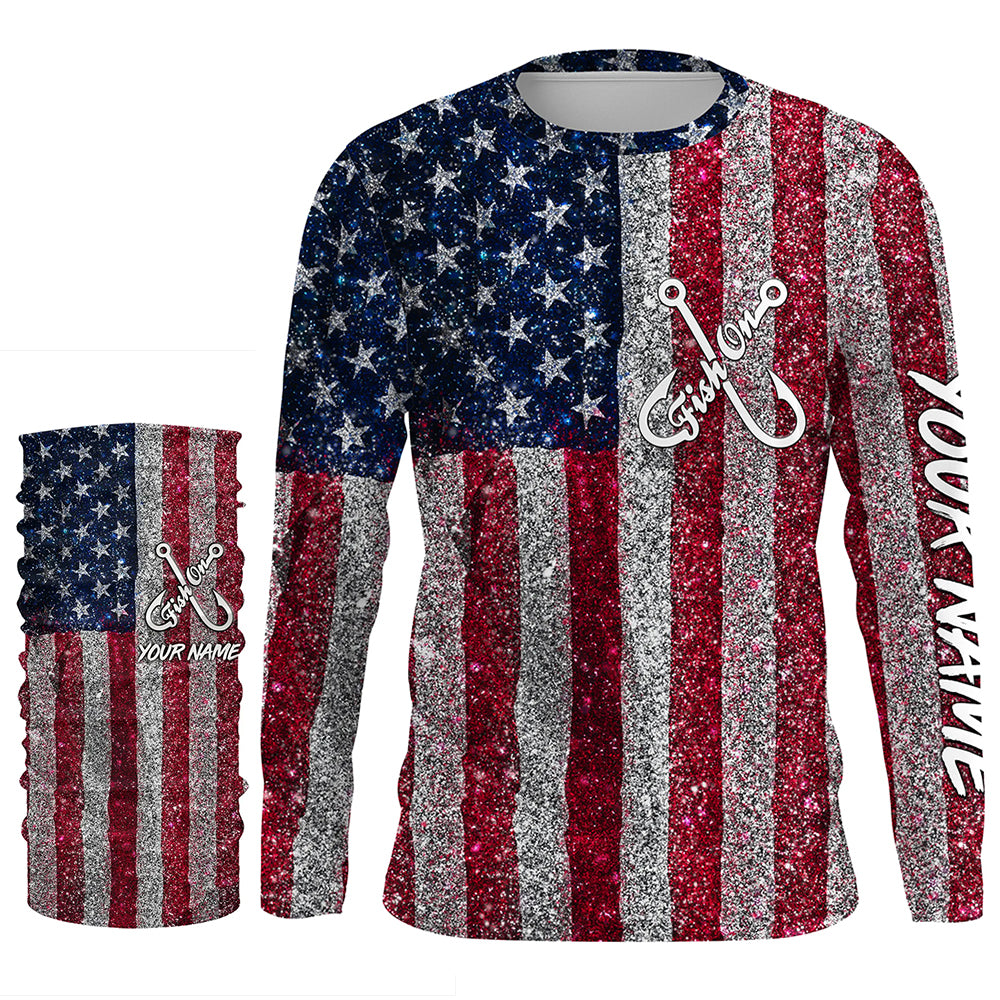 Fish On American Flag UV Protection Custom Long Sleeve Shirts Patriotic Fishing Jersey TTN127
