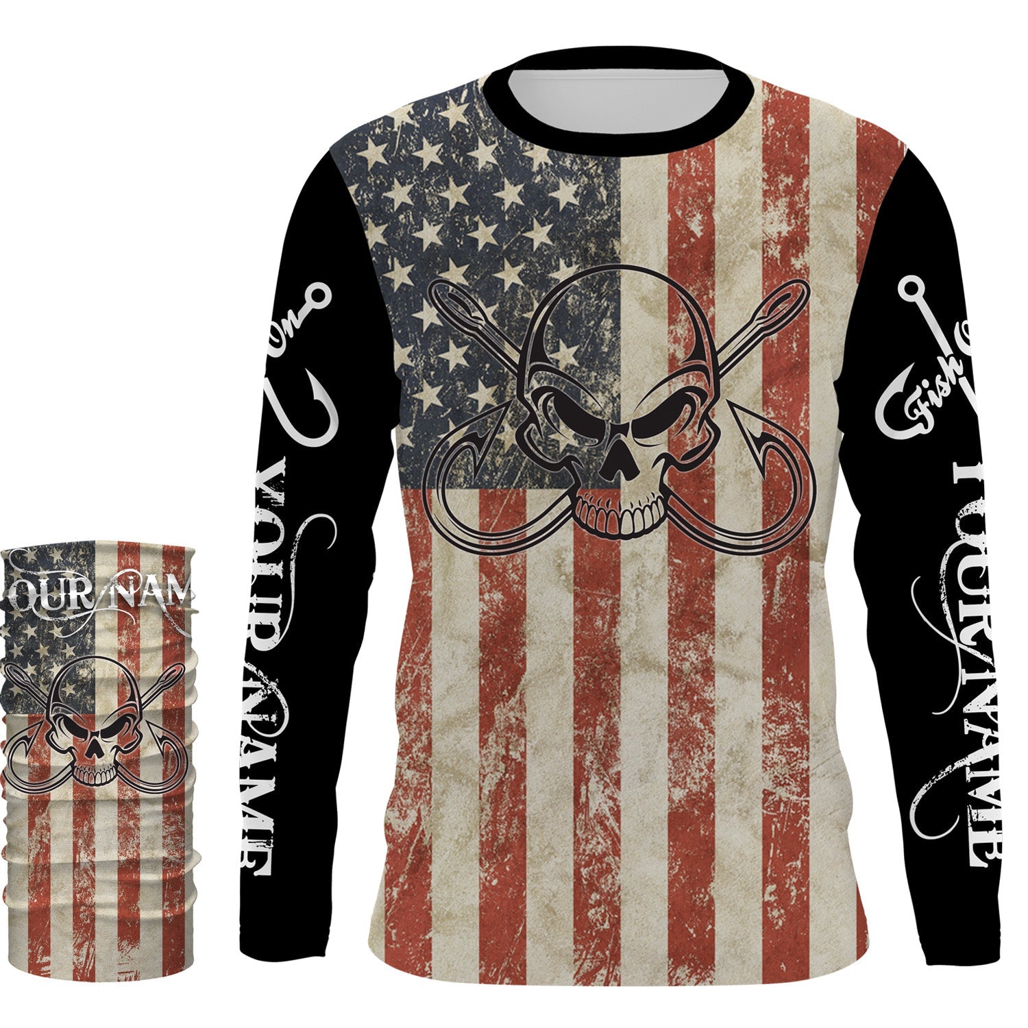 Fish Reaper Fishing American flag patriotic Custom Name 3D All over Printed UV Protection Shirts NQS2988