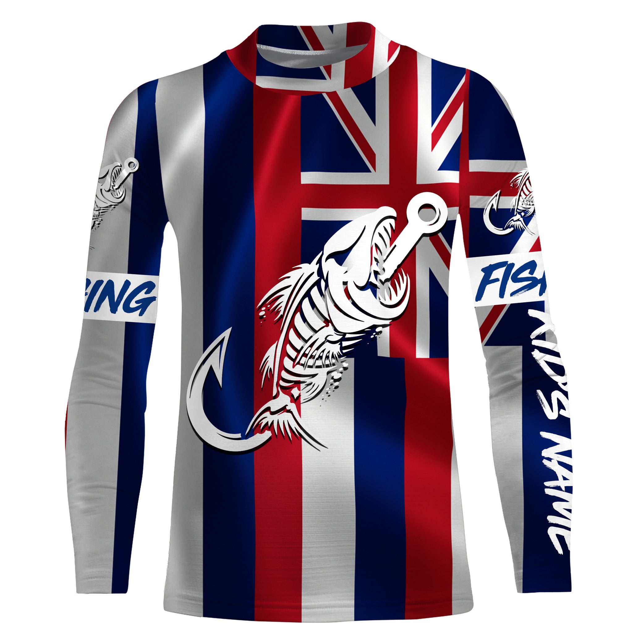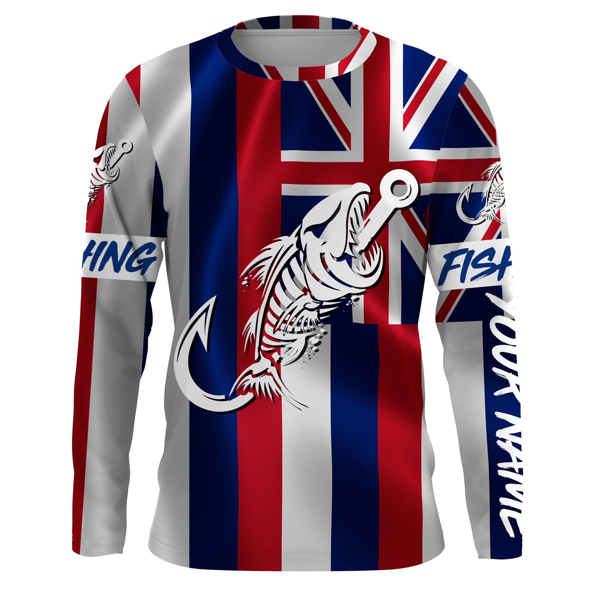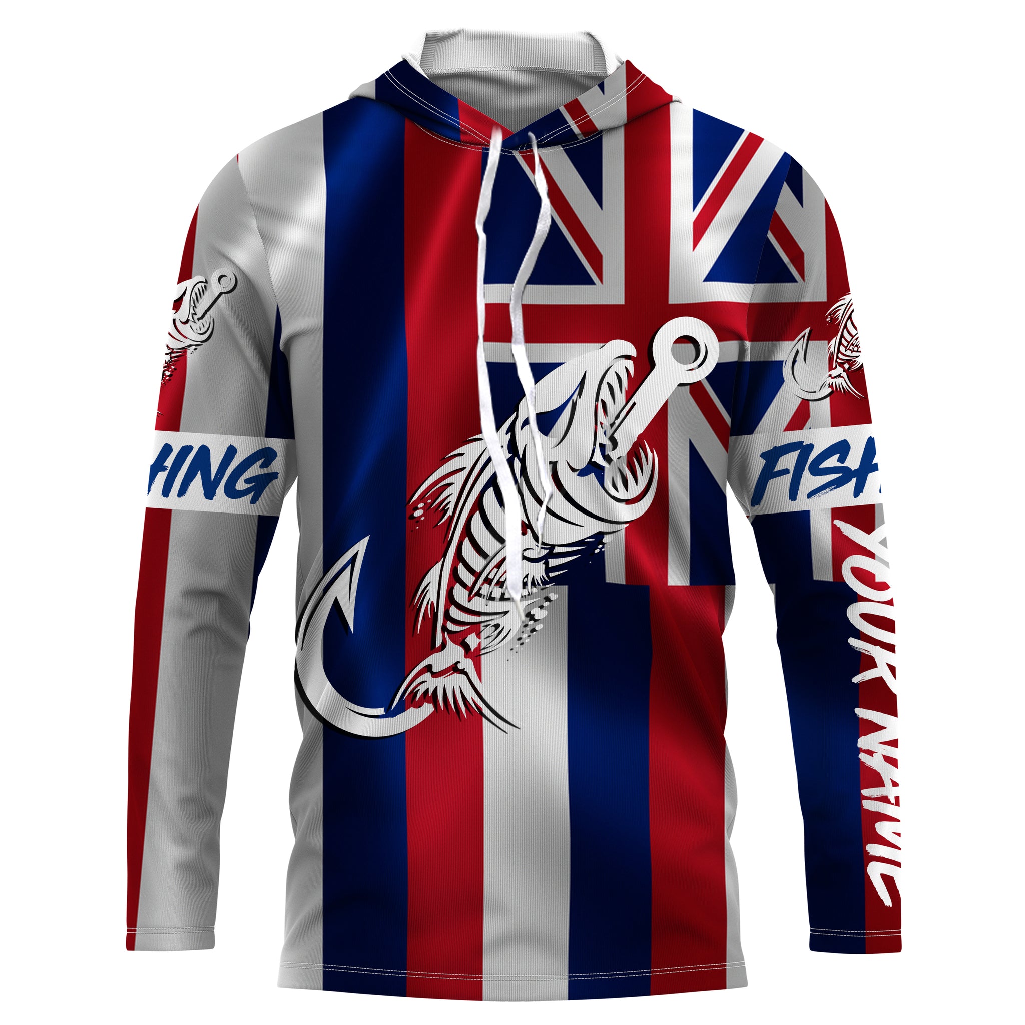 HI Fishing Custom Hawaiian Flag Fish hook skull Custom Name sun protection custom fishing shirts NQS3308