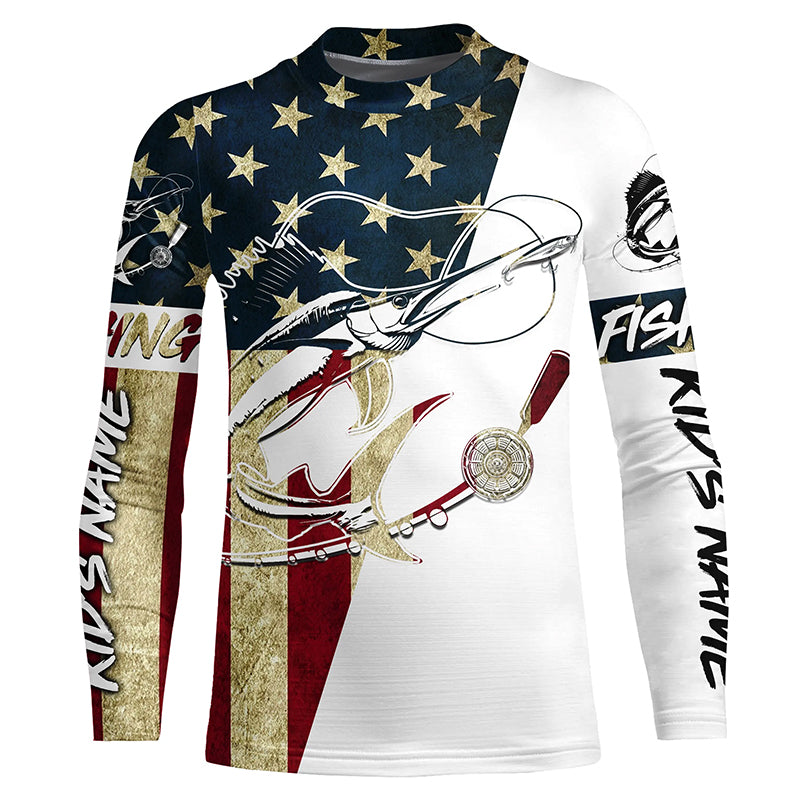 Vintage American Flag Custom Sailfish Fishing Long Sleeve Shirts, Patriotic Sailfish Fishing Jerseys IPHW6391