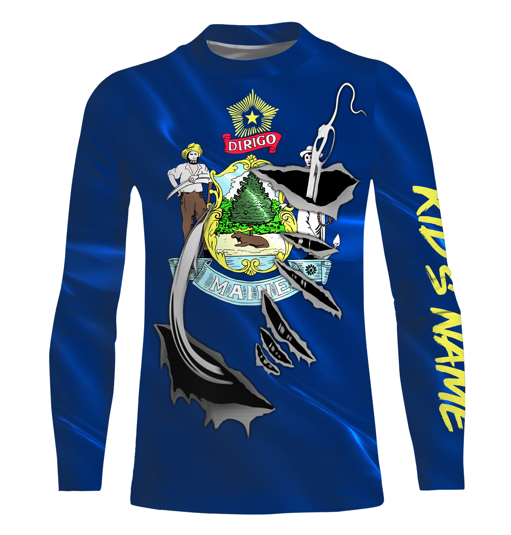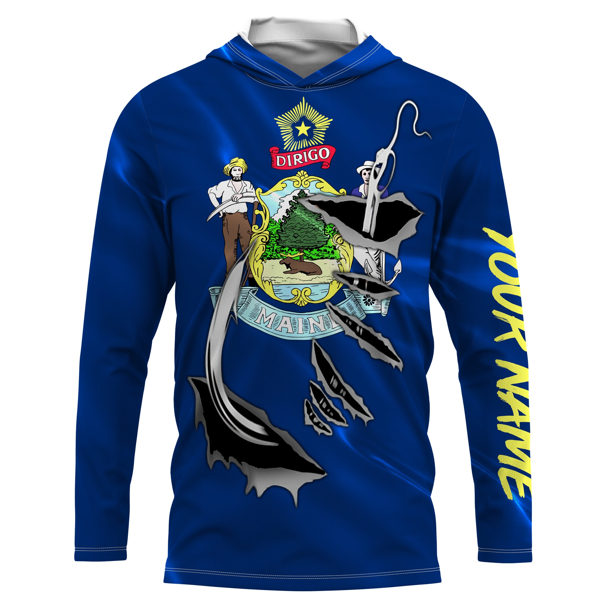 Maine Flag 3D Fish Hook UV Protection Custom Long Sleeve performance Fishing Shirts IPHW492