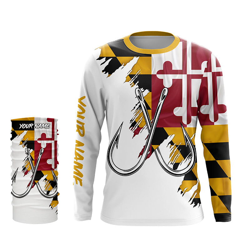 Maryland flag MD Fishing Fish Hook UV protection custom long sleeve Patriotic fishing apparel NQS8270