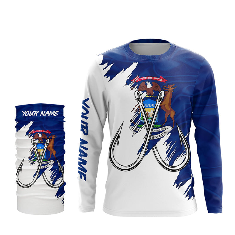 Michigan flag MI Fishing Fish Hook UV protection custom long sleeve Patriotic fishing apparel NQS8189