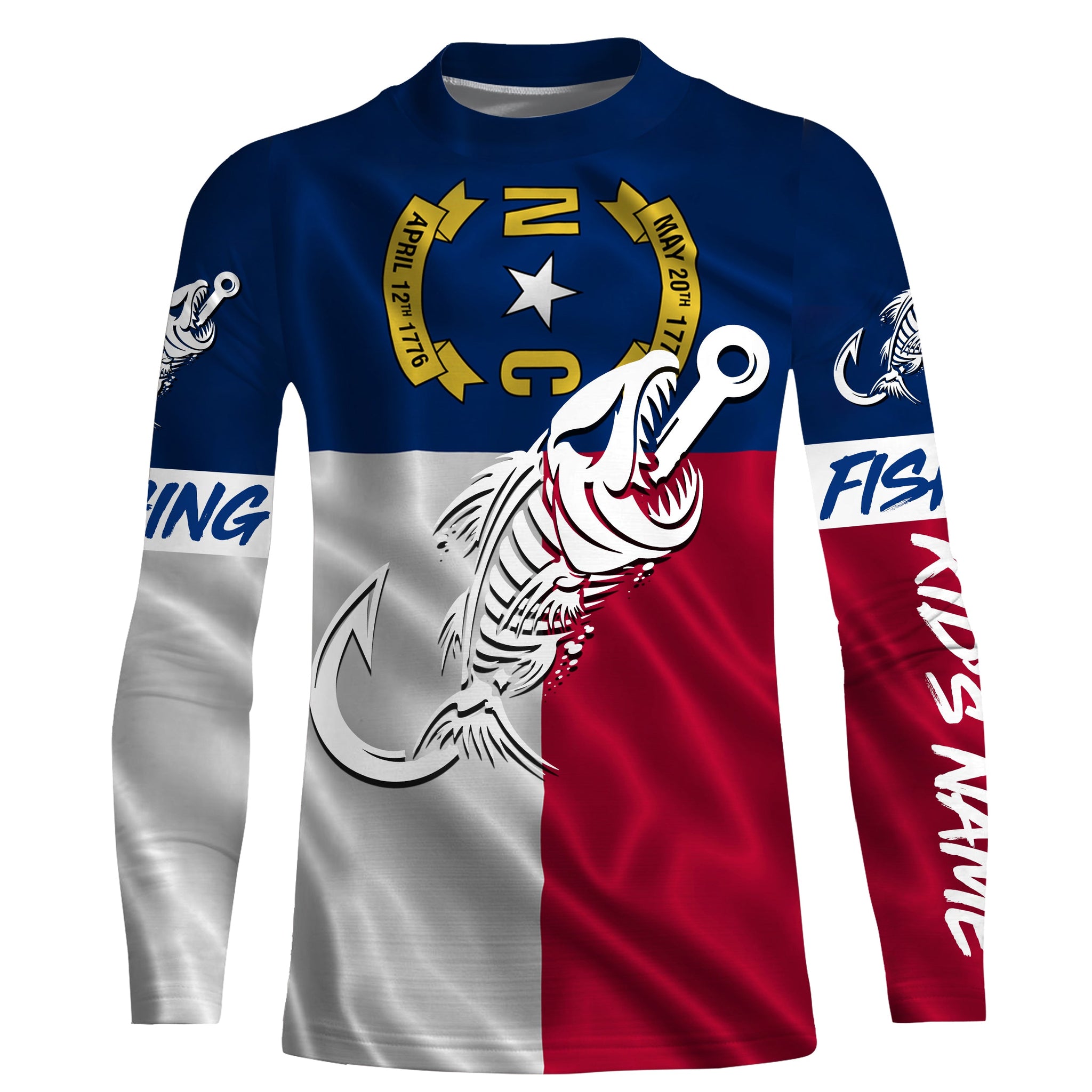 NC Fishing Custom North Carolina Flag Fish hook skull Custom Name sun protection custom fishing shirts NQS3305
