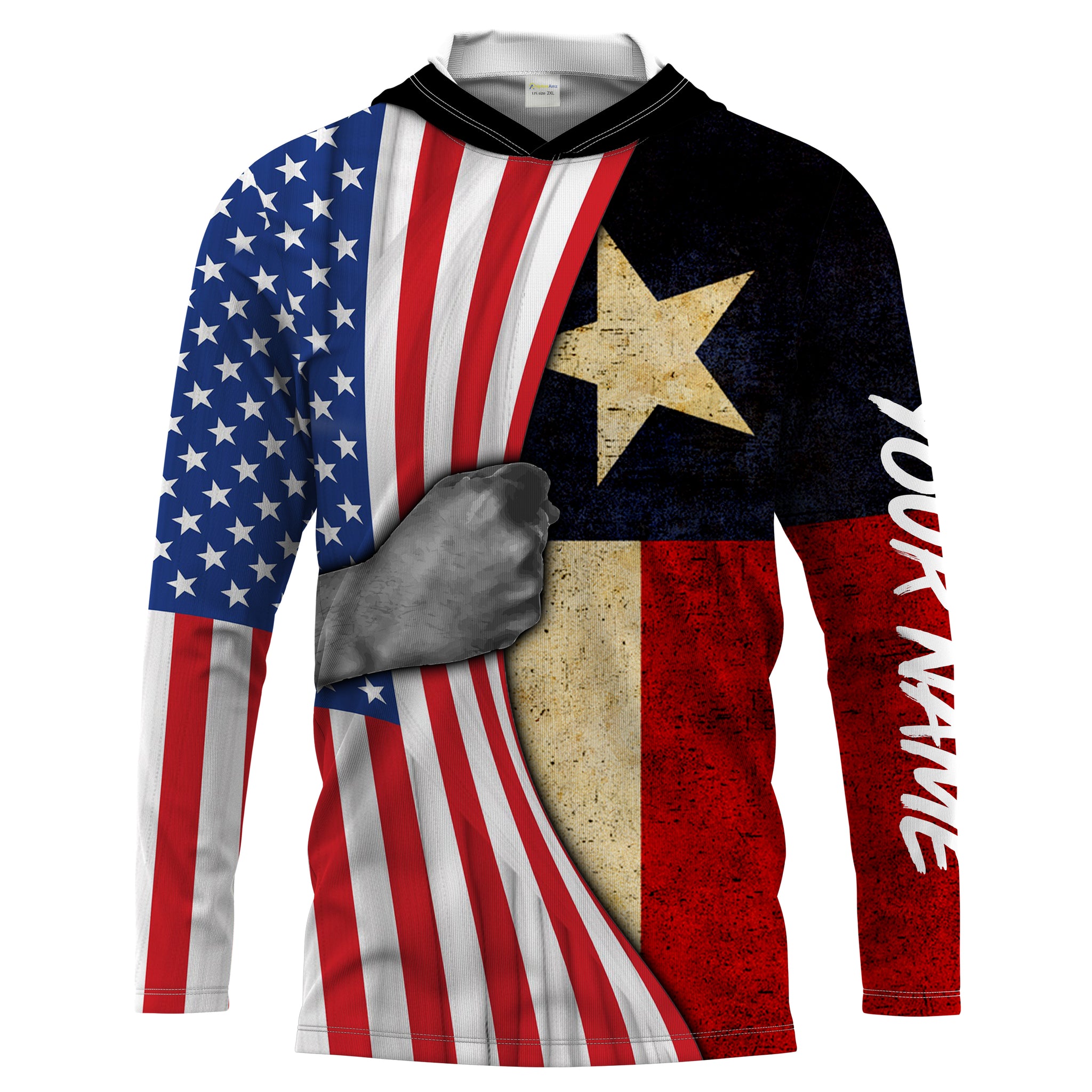 Personalized American Texas Flag Custom Long Sleeve performance Shirts, Patriotic apparel 4th of July day - IPHW1159
