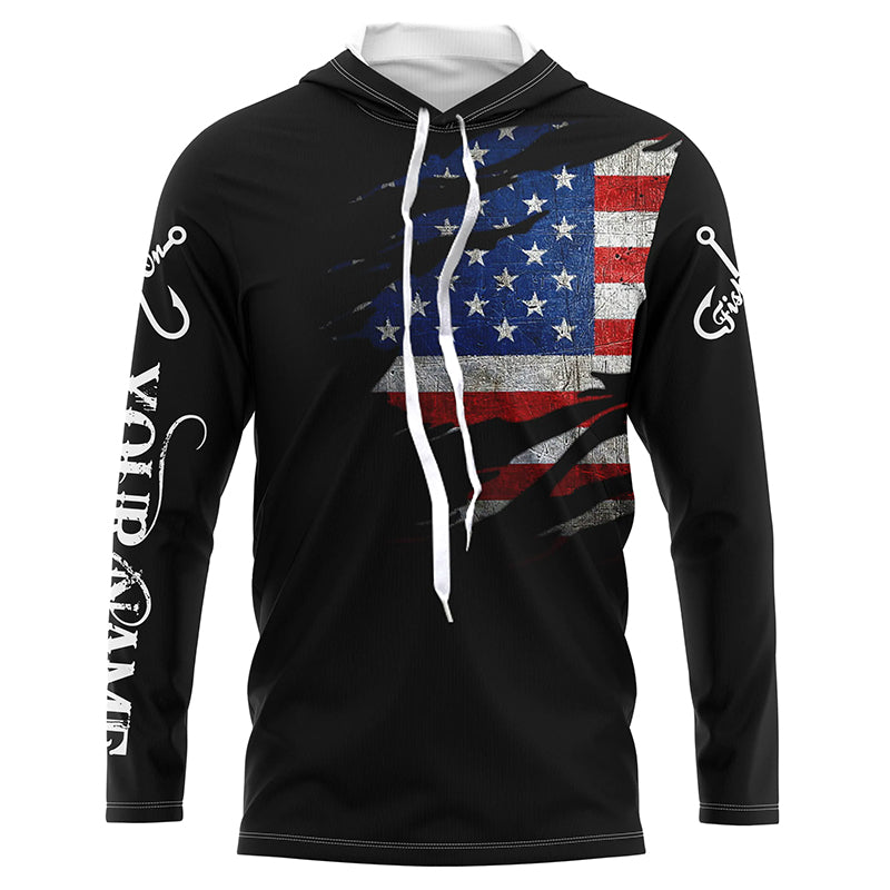US fishing fish on black American flag UV protection Customize performance long sleeve fishing shirts NQS6233