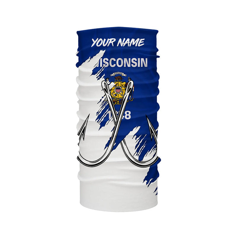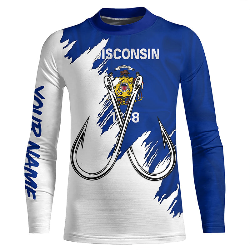 Wisconsin flag WI Fishing Fish Hook UV protection custom long sleeve Patriotic fishing apparel NQS8273