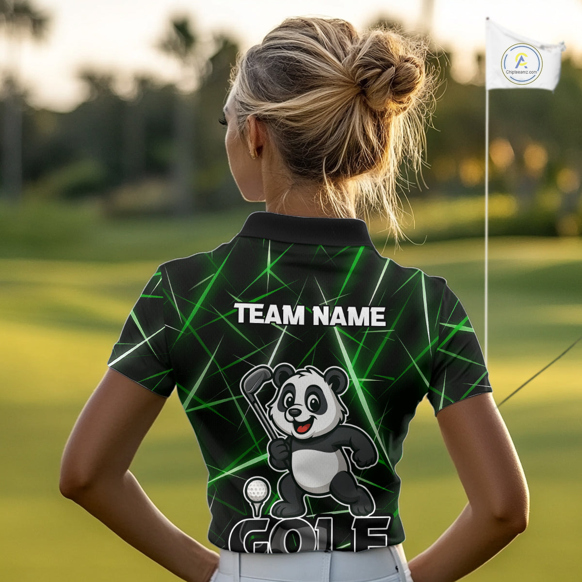 Black and Green Funny Panda Playing Golf Polo Shirt For Women Custom ladies golf clothes golf gift NQS10740
