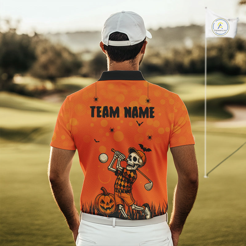 Custom Funny orange Golf skull Halloween Mens golf polo shirt, Personalized Halloween golf outfit NQS10397