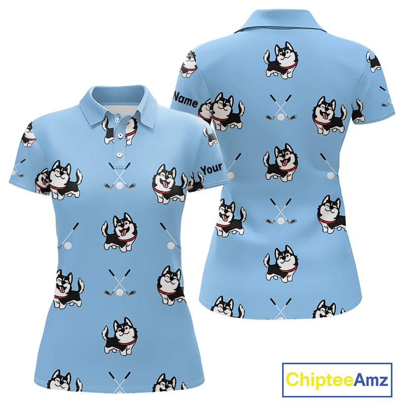 Funny Husky Blue Pattern Custom White Womens Golf Polo Shirts, Team Ladies Golf Tops, Dog Lover Gift NHN0065