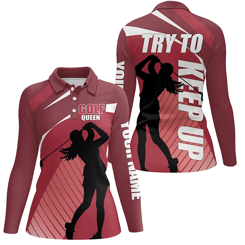 Funny Womens golf polo shirt custom golf queen try to keep up sport team golf shirts ladies NQS5346