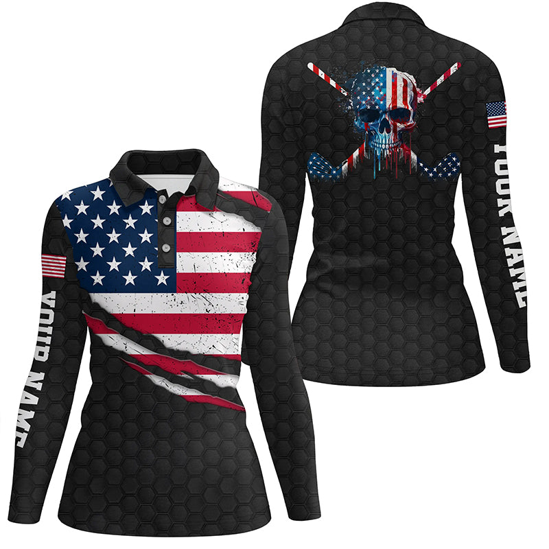 American Flag Skull Golf Shirts For Women, Funny Golf Shirt, Personalized Women Golf Shirts Golf Gift LDT0041