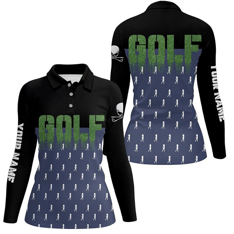 Black And Navy Womens Golf Polo Shirts, Custom Funny Golf Shirt For Ladies, Skull Golfing Gifts LDT0136
