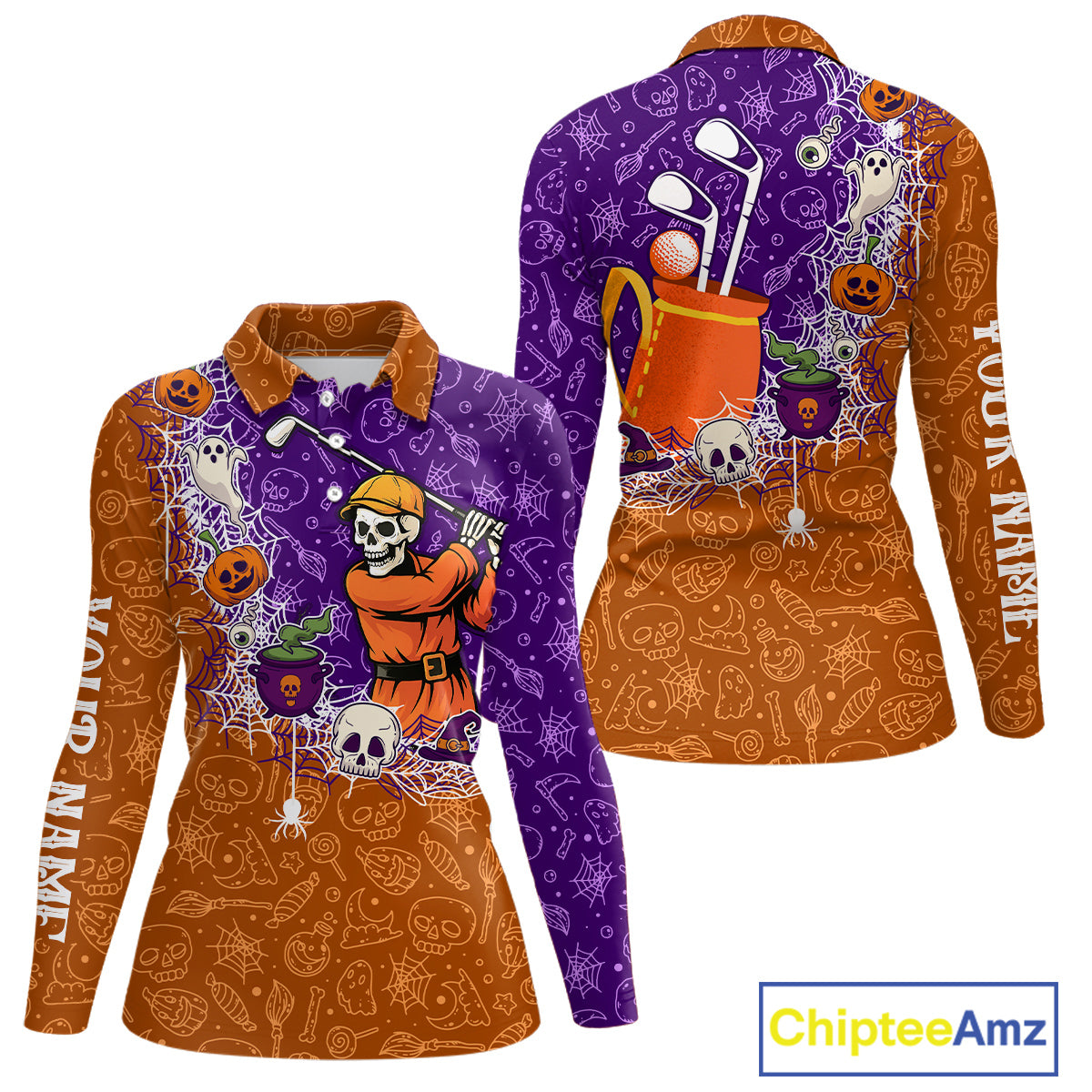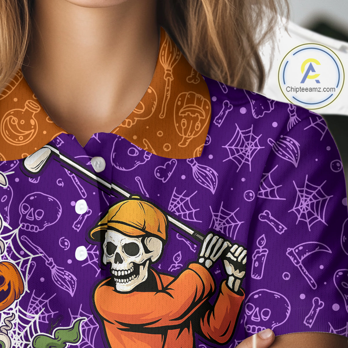 Halloween Skull Playing Golf Women Golf Polo Shirt Custom Halloween golf outfit For Ladies Golf Gifts NQS10340