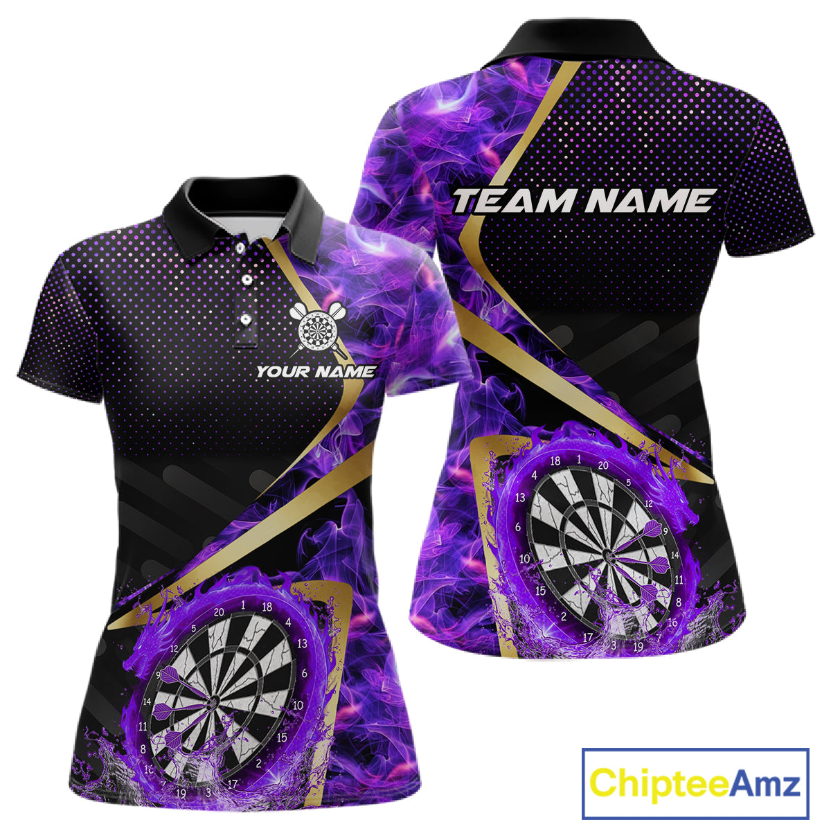 Custom Purple Flames Dragon Dartboard Halftone Dart Women Polo Jerseys Gold Dart Team Shirt NYN1691