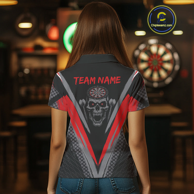 Custom Multi-Skull Lightning Blue Dartboard Dart Women Polo Jerseys Grim Reaper Dart Shirts NYN1739