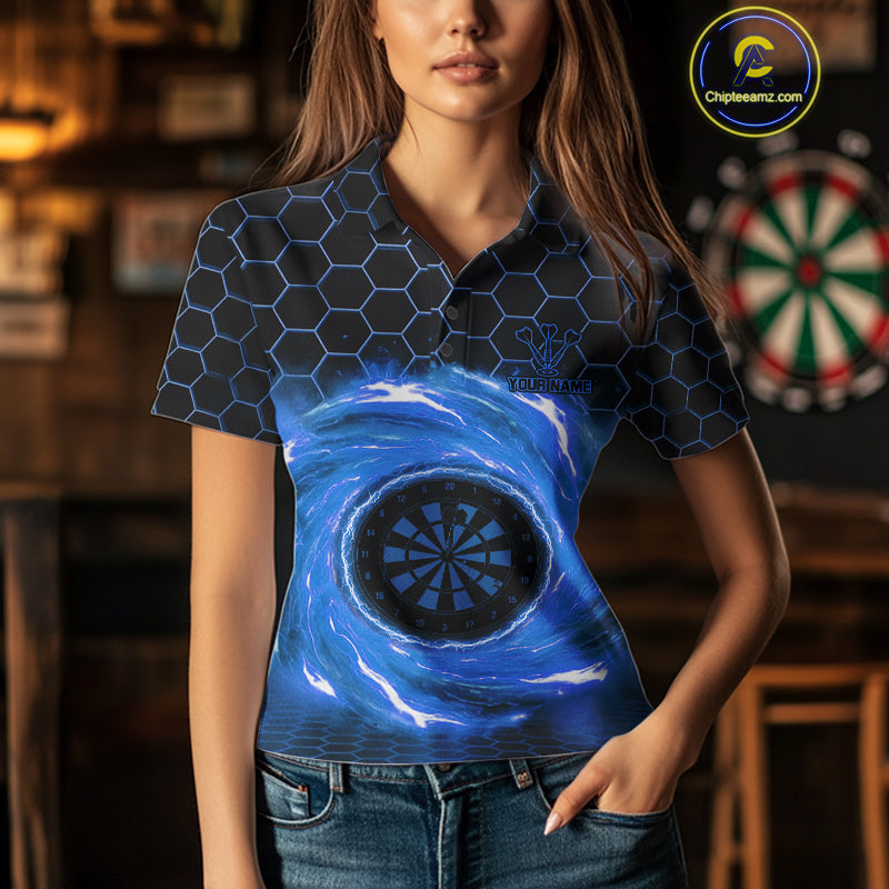 Black & Blue Storm Lightning Dartboard Custom Women Polo Dart Shirt Halftone Dart Jerseys NYN1776