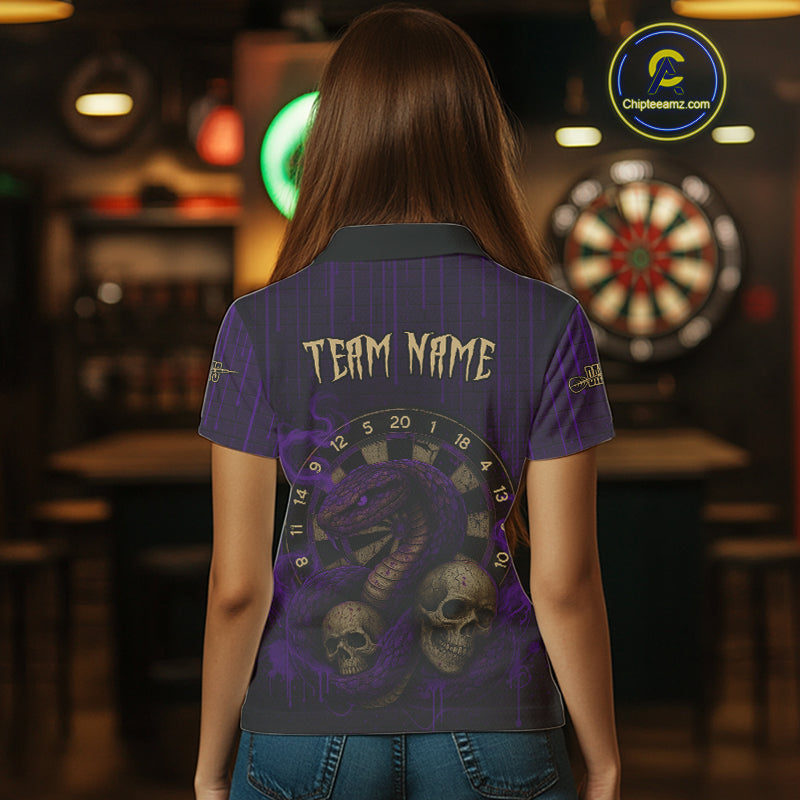 Purple Dripping Cobra Dartboard Custom Women Polo Darts Shirt Grunge Skull Darts Jersey NYN1797