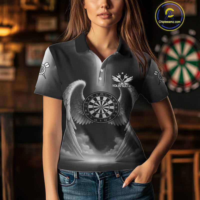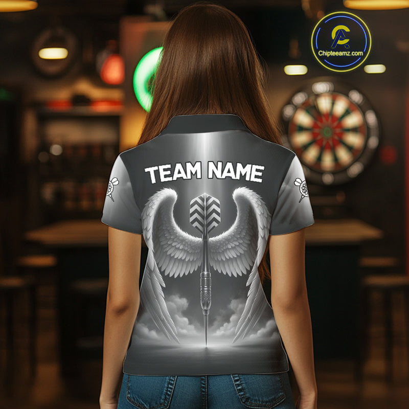 Grey Silver Wings Dartboard & Arrow Custom Women Darts Polo Shirt Outfits Dart Jerseys NYN1858