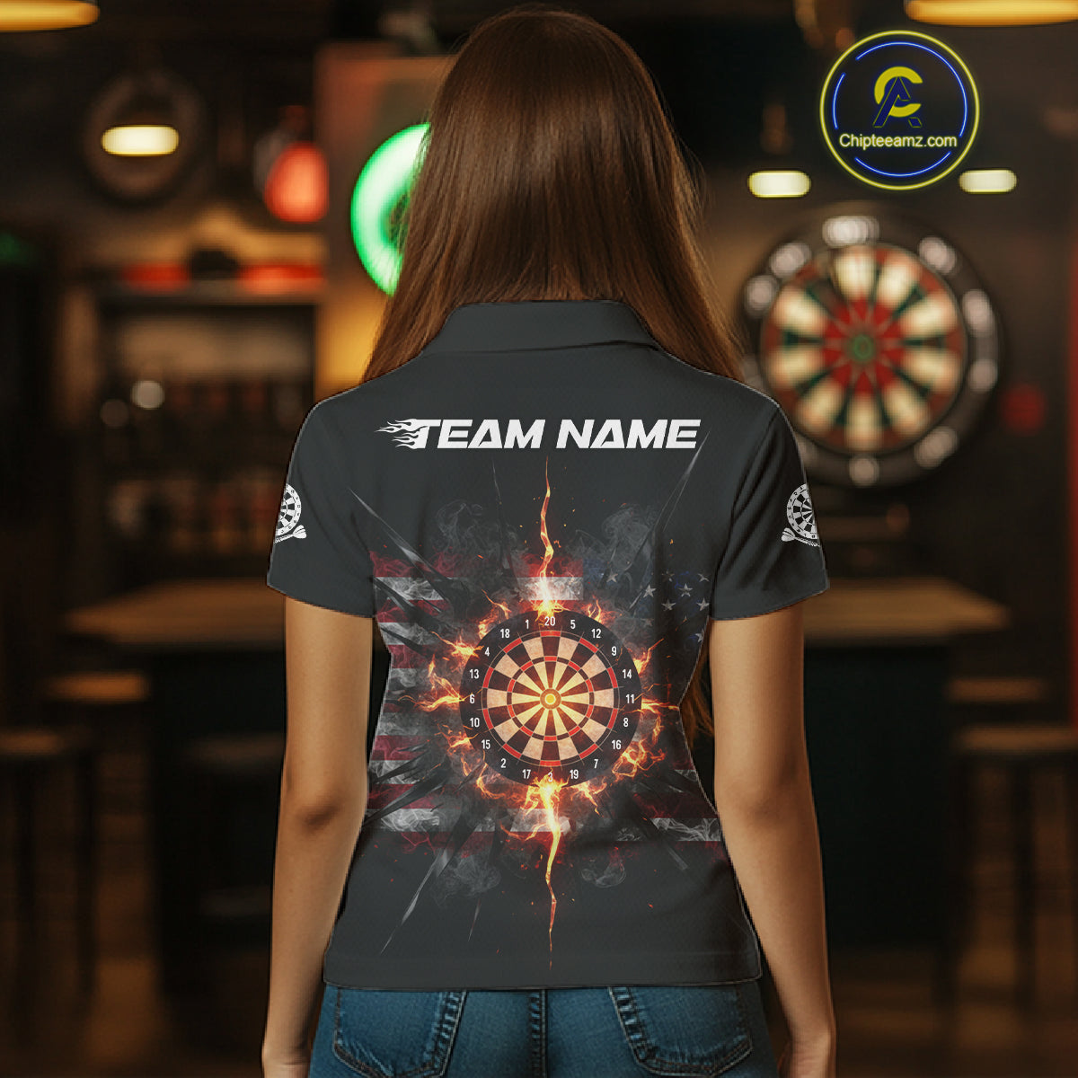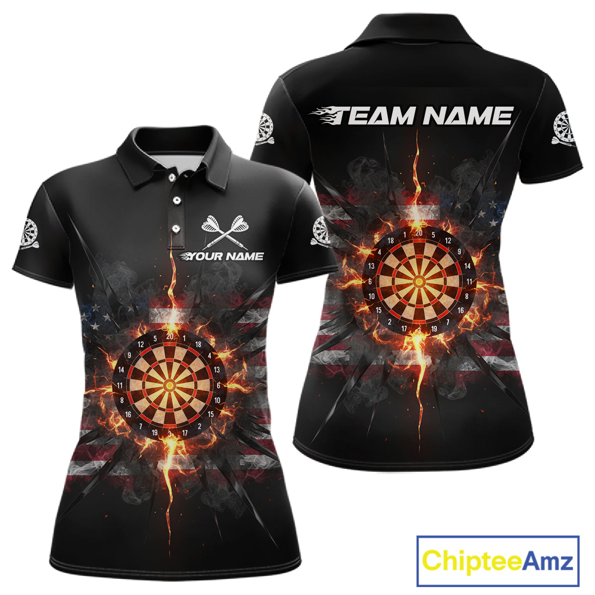Smoke US Flag Fire Flame Dartboard Custom Women Darts Polo Shirt Patriotic Dart Jerseys NYN1859