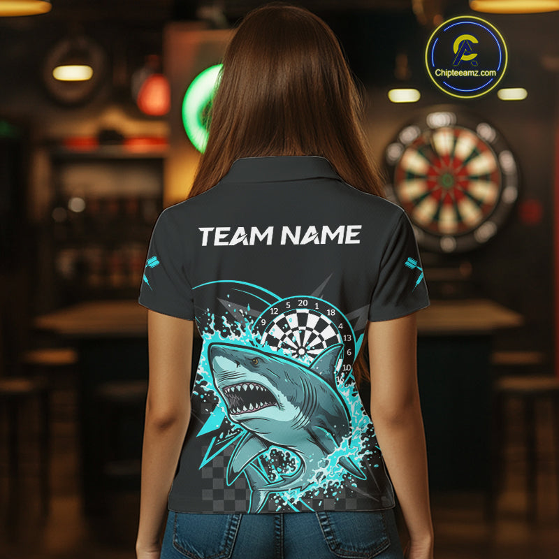 Black And Turquoise Funny Shark Dartboard Custom Women Darts Polo Shirt Dart Jerseys NYN1906