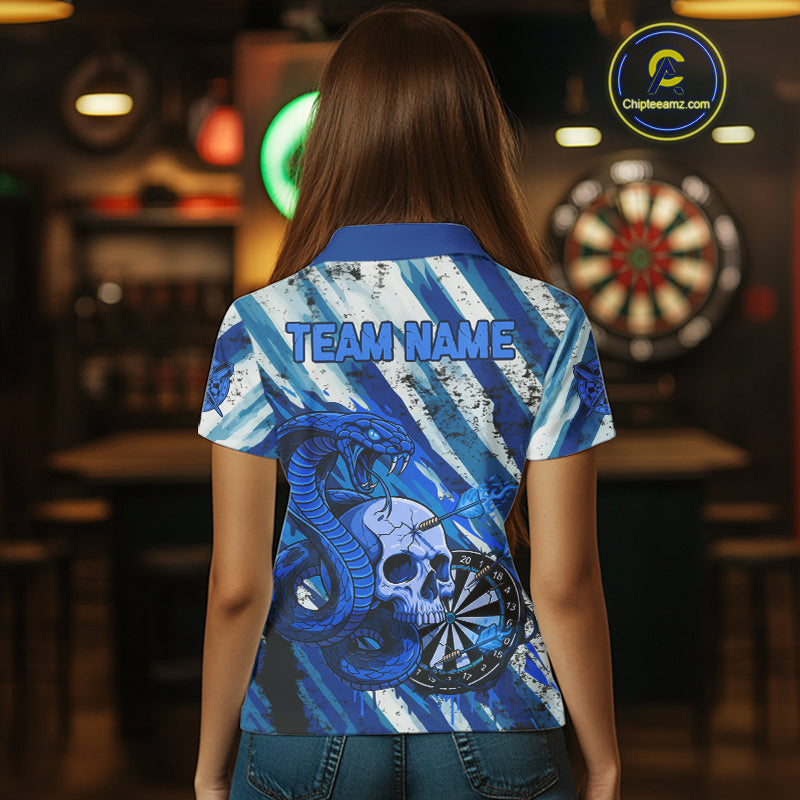 White And Blue Cobra Skull Dartboard Custom Women Darts Polo Shirt Grunge Dart Jerseys NYN1929
