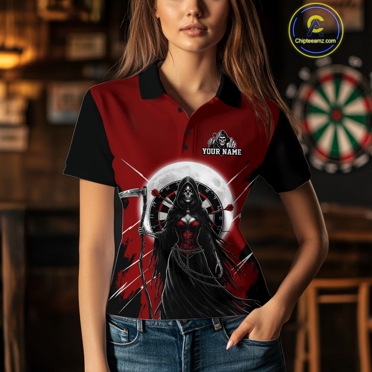 Black And Red Grim Reaper Moon Dartboard Custom Women Darts Quarter-Zip Shirt Gothic Dart Jerseys NYN1947