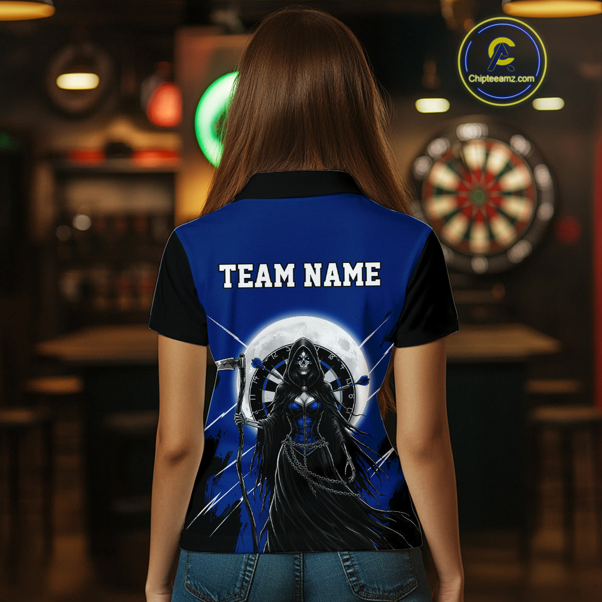 Black And Blue Grim Reaper Moon Dartboard Custom Women Darts Quarter-Zip Shirt Gothic Dart Jerseys NYN1948