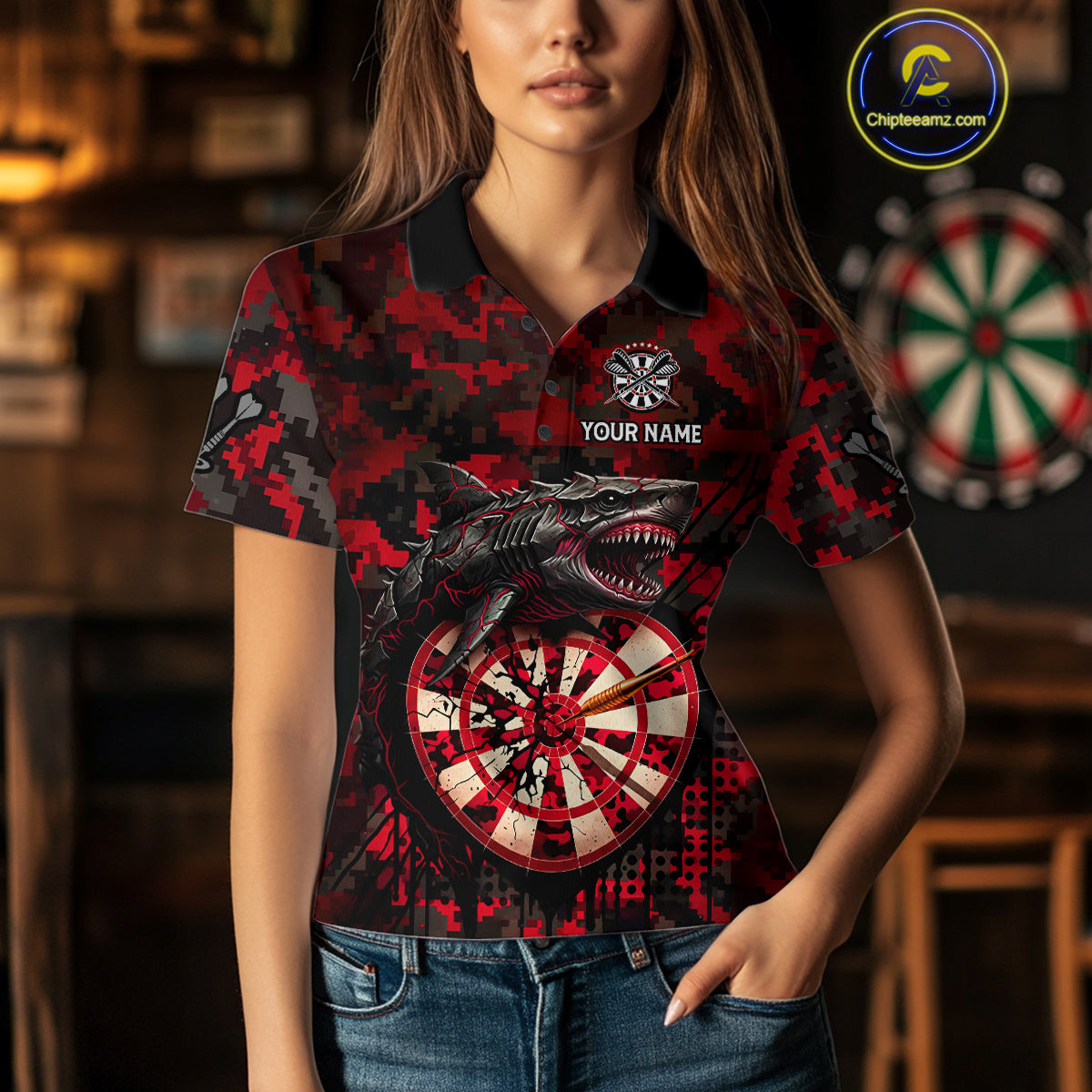 Custom Red Digital Camo Dartboard Horror Shark Darts Polo Shirt For Women Dart Gifts NYN1965