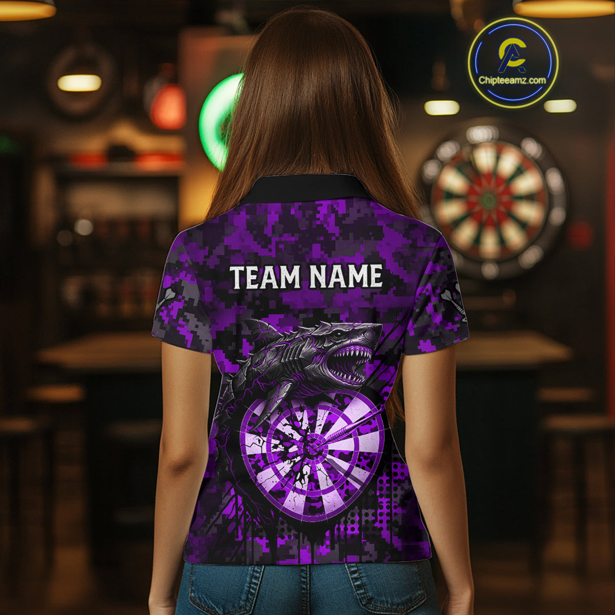 Custom Purple Digital Camo Dartboard Horror Shark Darts Polo Shirt For Women Dart Gifts NYN1967
