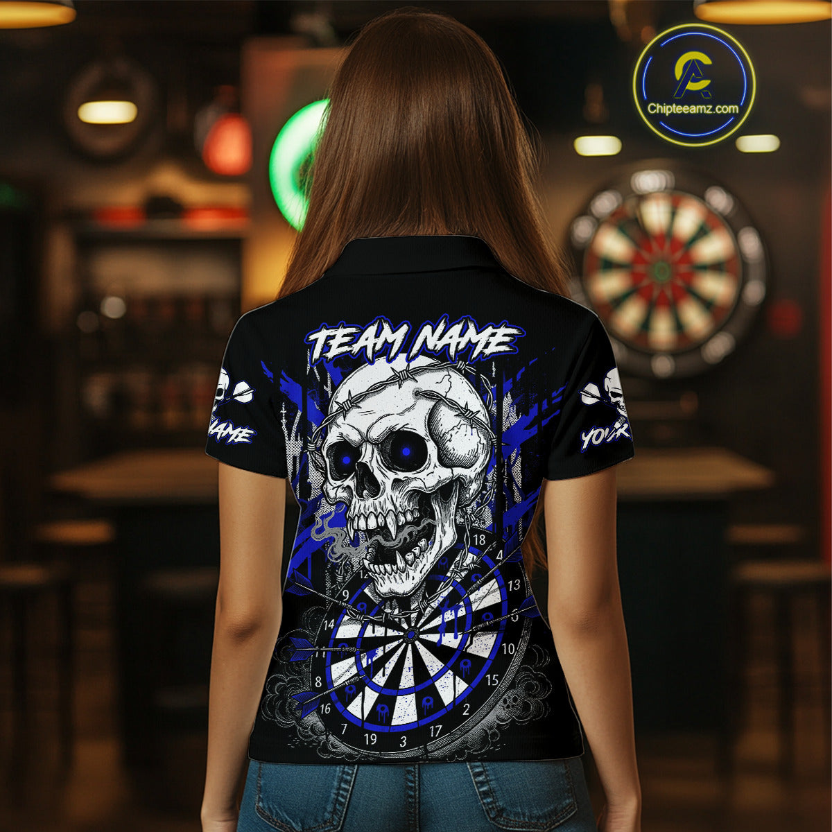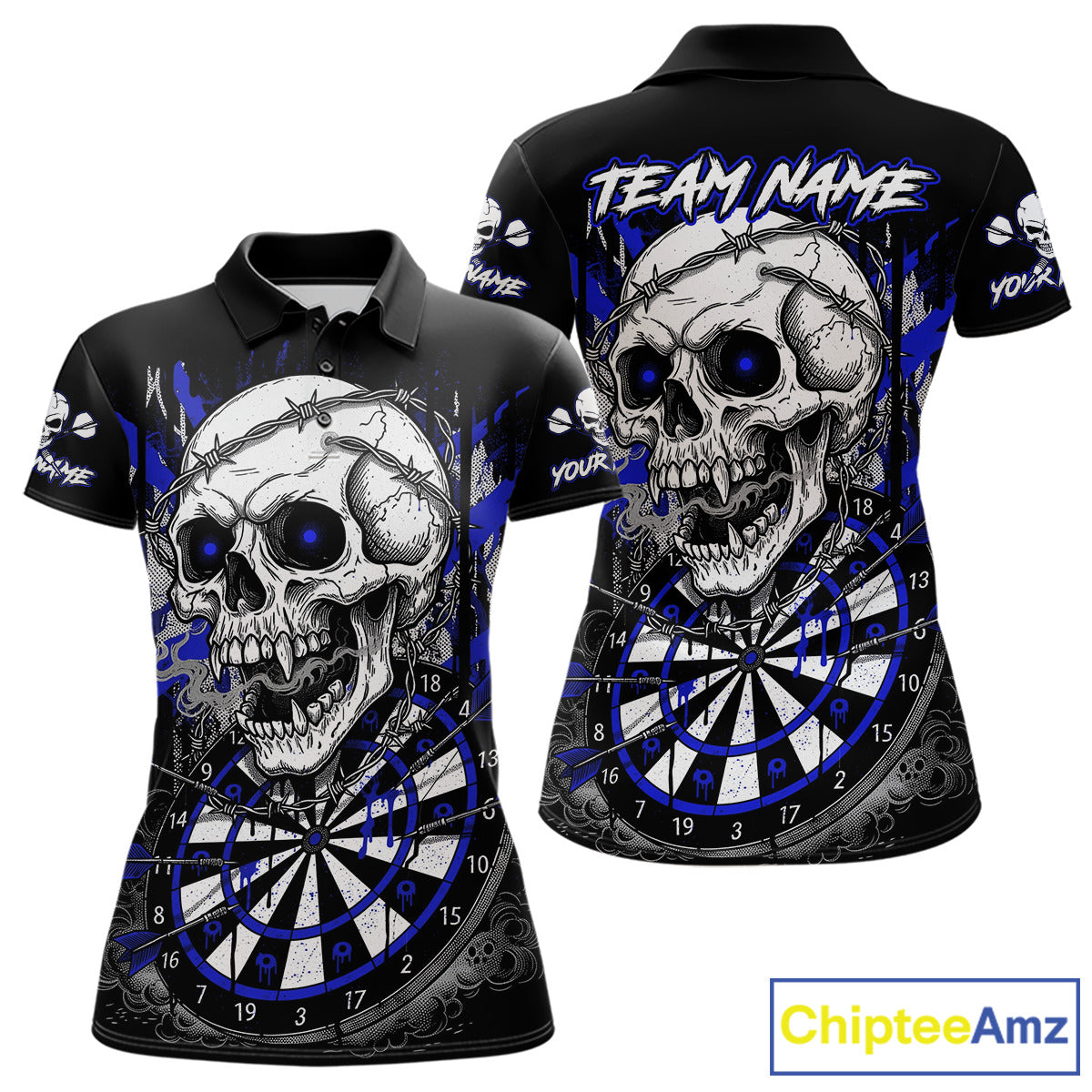Custom Blue Grey Skull Barbed Wire Dartboard Grunge Darts Polo Shirt For Women Dart Gifts NYN1970