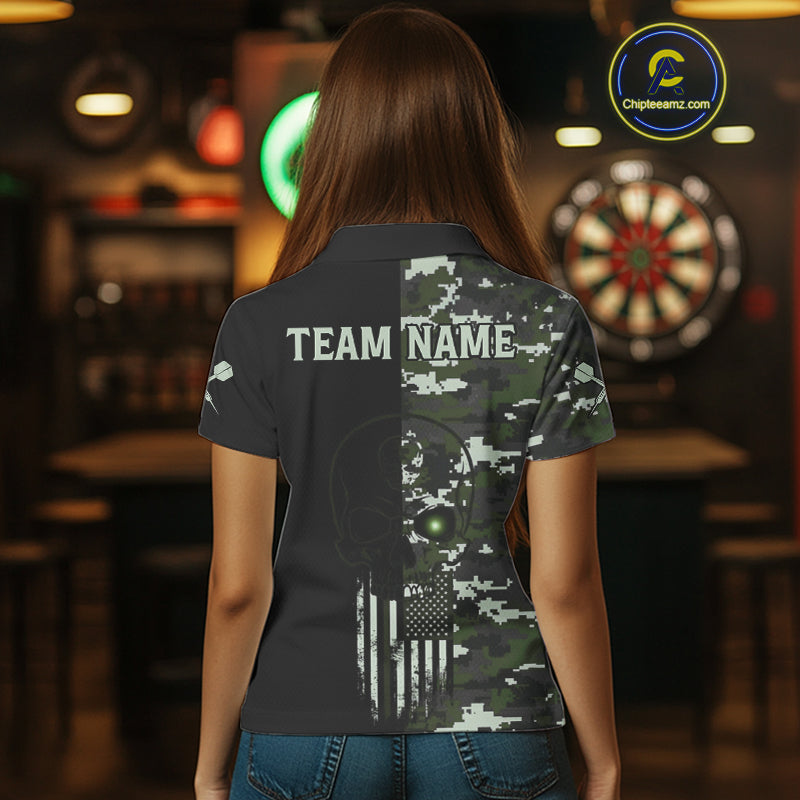 Black Green Military US Flag Digital Camo Skull Custom Men Darts Polo Shirt Dart Gifts NYN1986