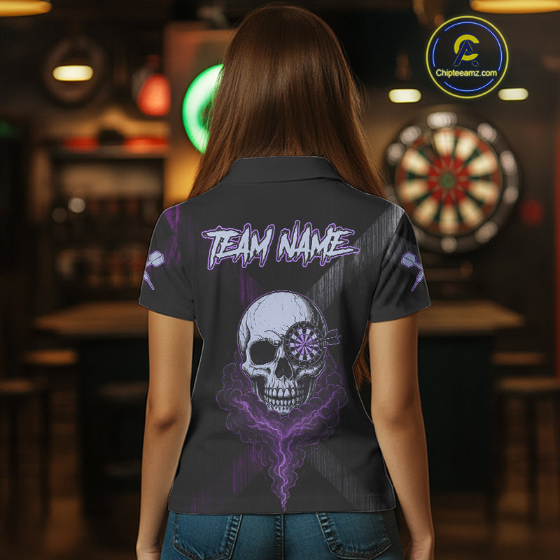 Black & Purple Smoke Skull Dartboard Women Darts Polo Shirt Grunge Dart Gifts NYN1993