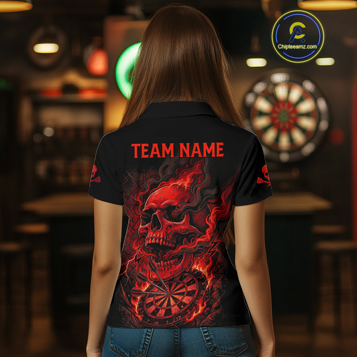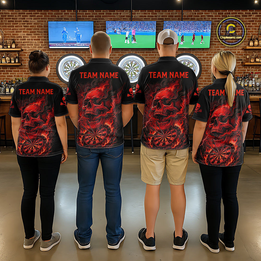 Fire Flame Skull Red Grunge Dartboard Custom Dart Polo Shirt For Women Dart League Jerseys NYN2092
