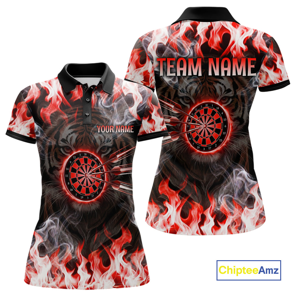 Red Flaming Tiger Women Dart Polo Shirts Personalized Name & Team Fire Flame Dart Jerseys NYN2102