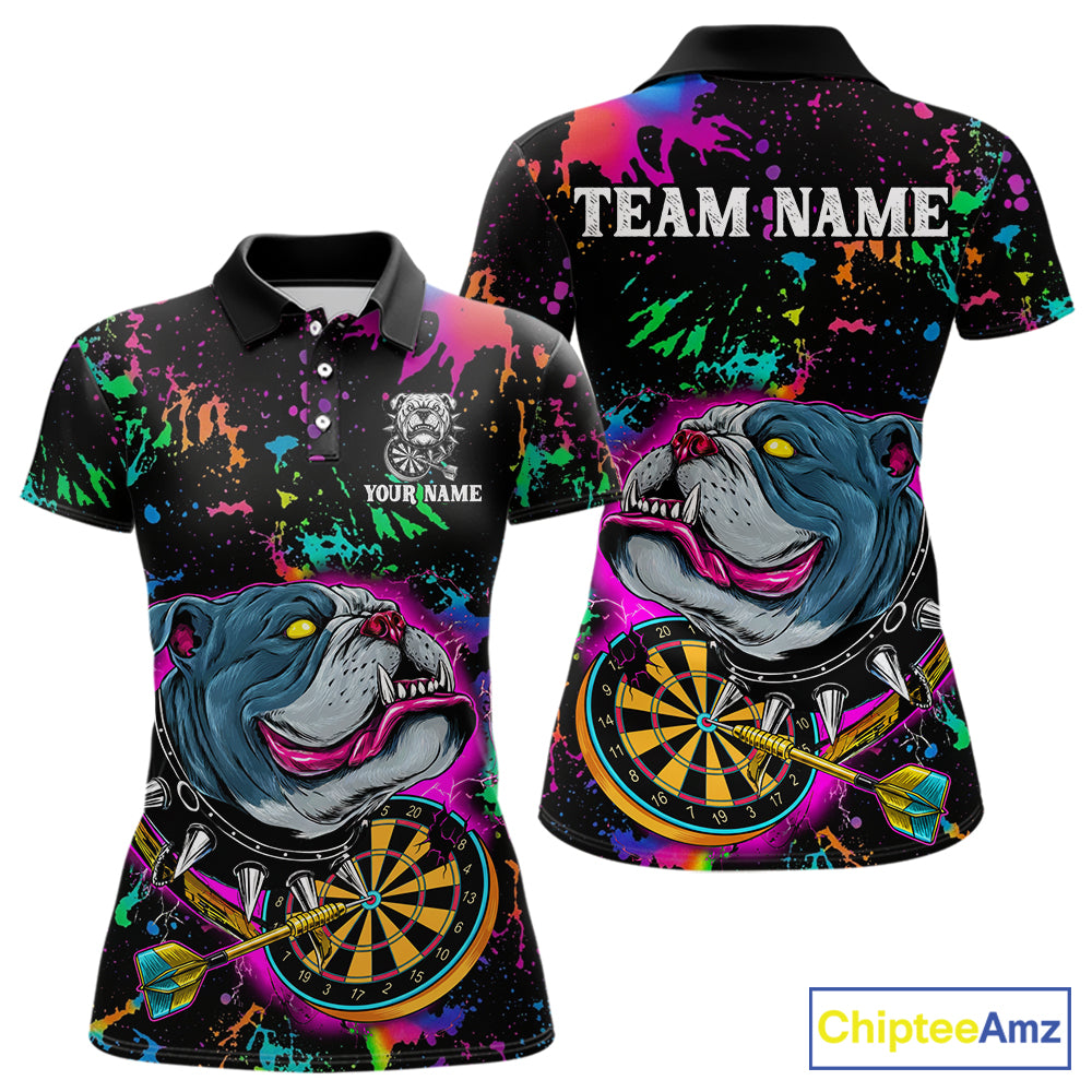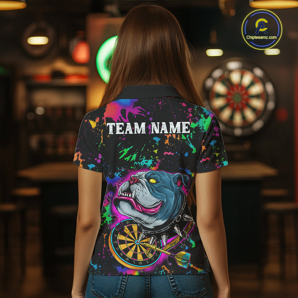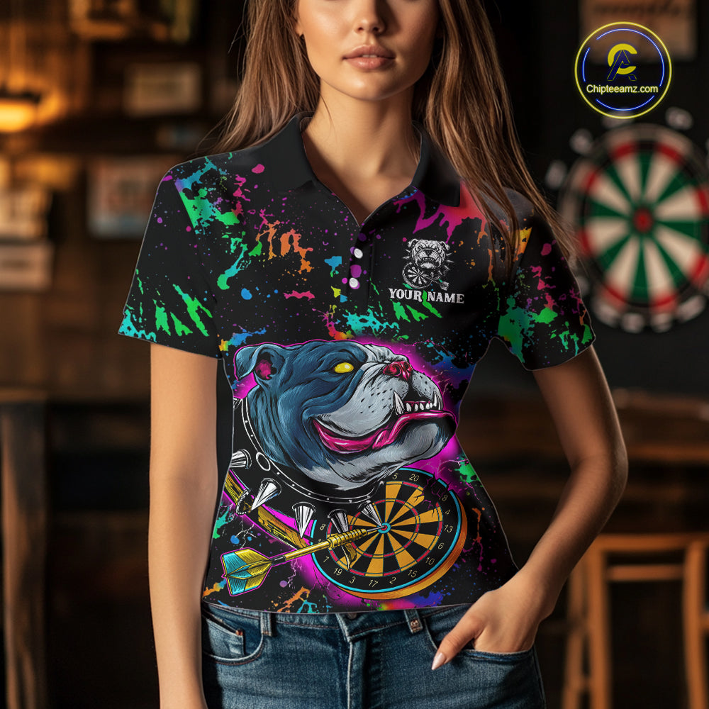 Custom Colorful Bulldog Dartboard 3D Funny Dart Shirts Polo For Women Dart League Jerseys NYN2107