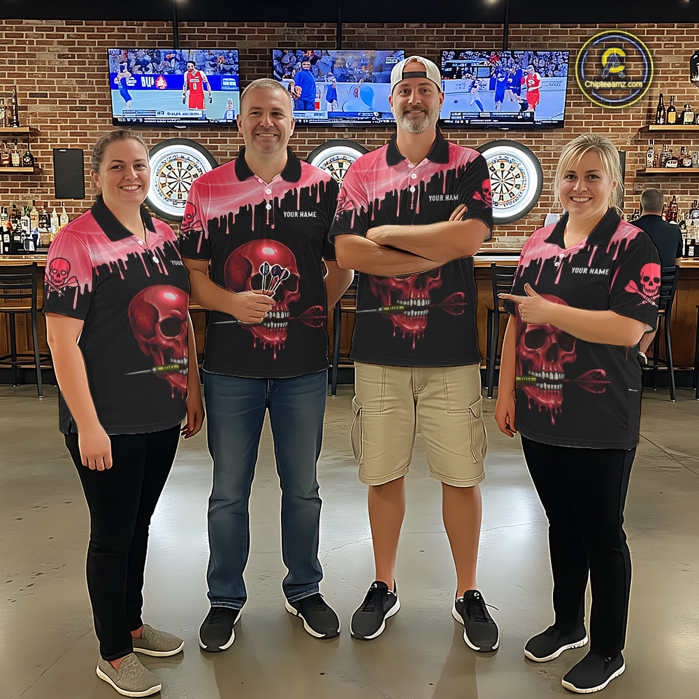Custom Holographic Red Skull Darts Shirt Polo For Women Light Skull Dart League Jerseys NYN2110