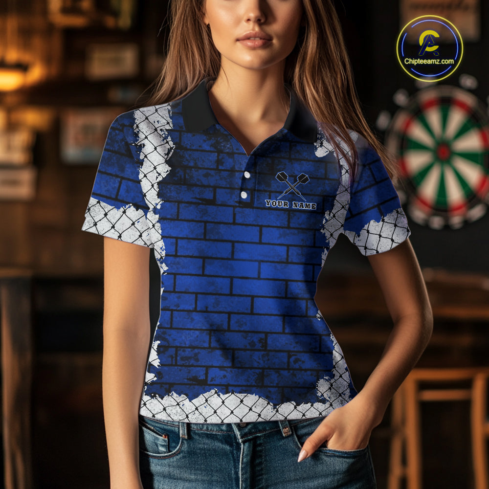 Blue Brick-Wall Fierce Bulldog Women Darts Polo Team Shirt Personalized Name For Players NYN2116