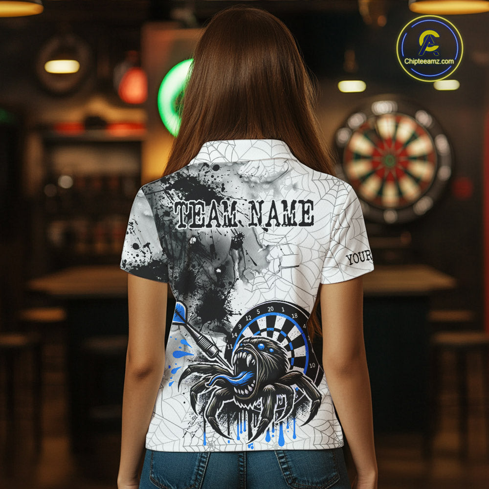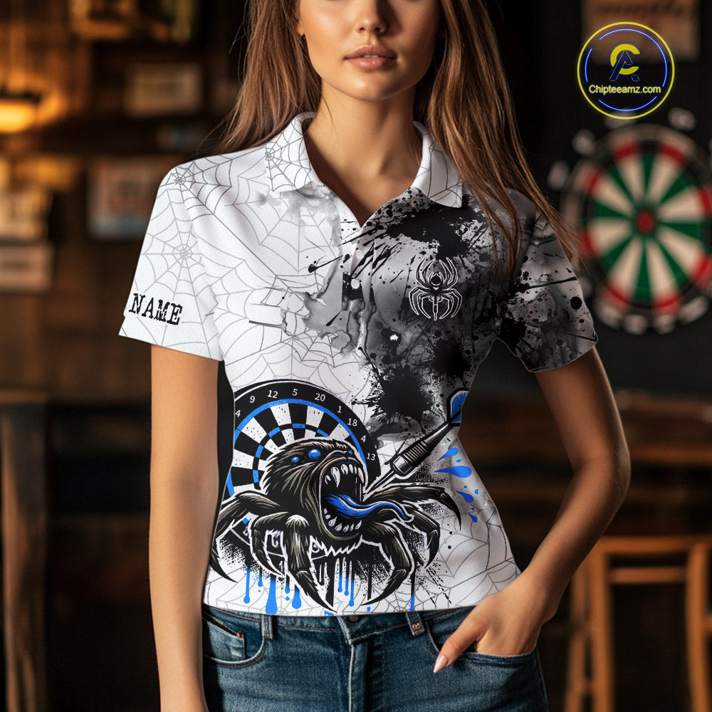 Personalized Dripping Black And Blue Spider Dart Polo Shirts For Women, Custom Dart Jerseys NYN2118