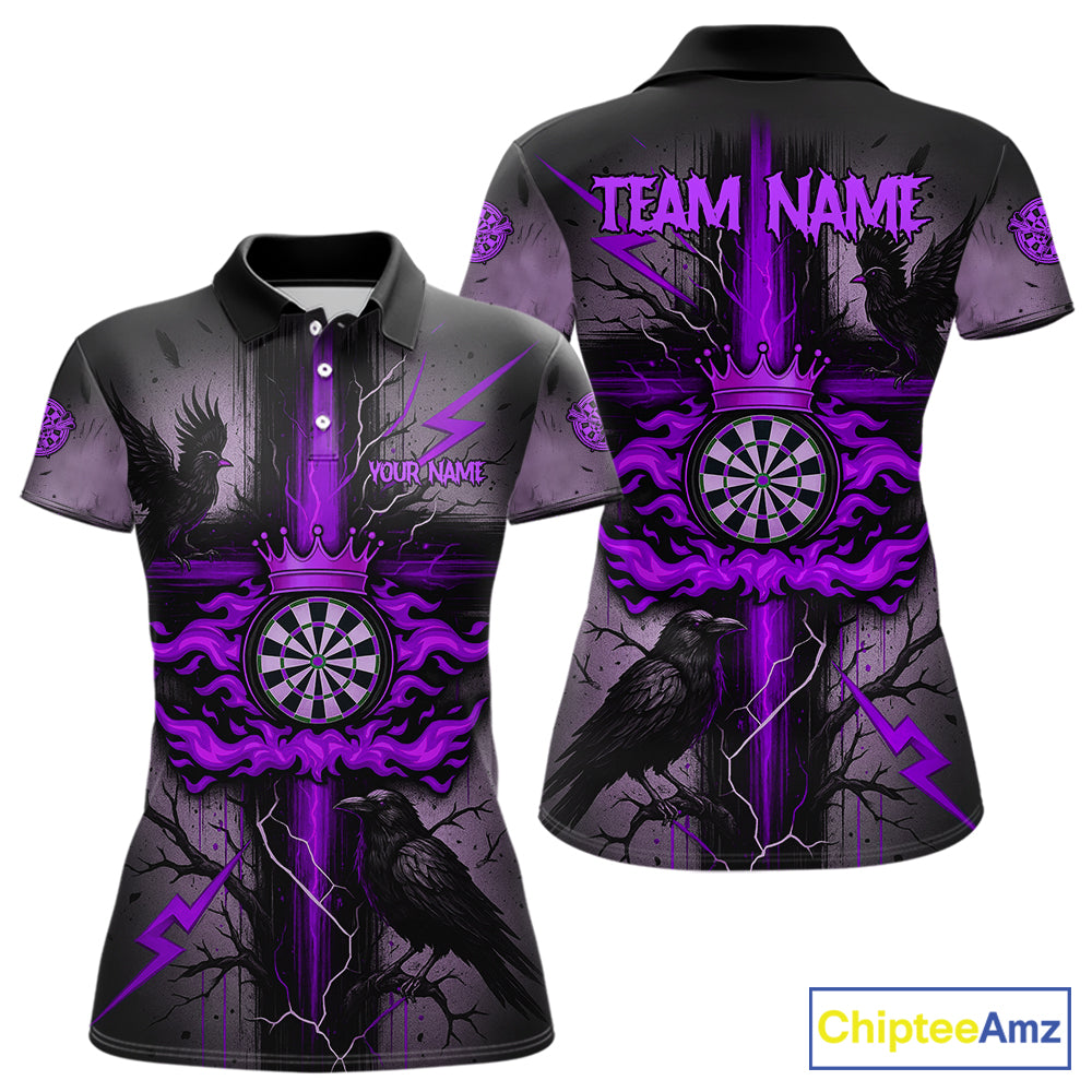 Personalized Raven Purple Flames Crown Darts Polo Shirts For Women Cross Dart Gothic Jerseys NYN2195