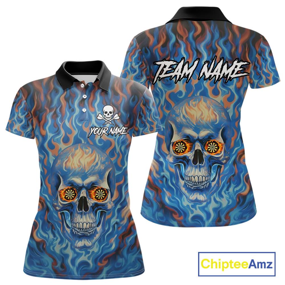 Custom Blue Fire Flaming Skull Dartboard Women Darts Polo League Shirts Outfits Dart Jerseys NYN2207