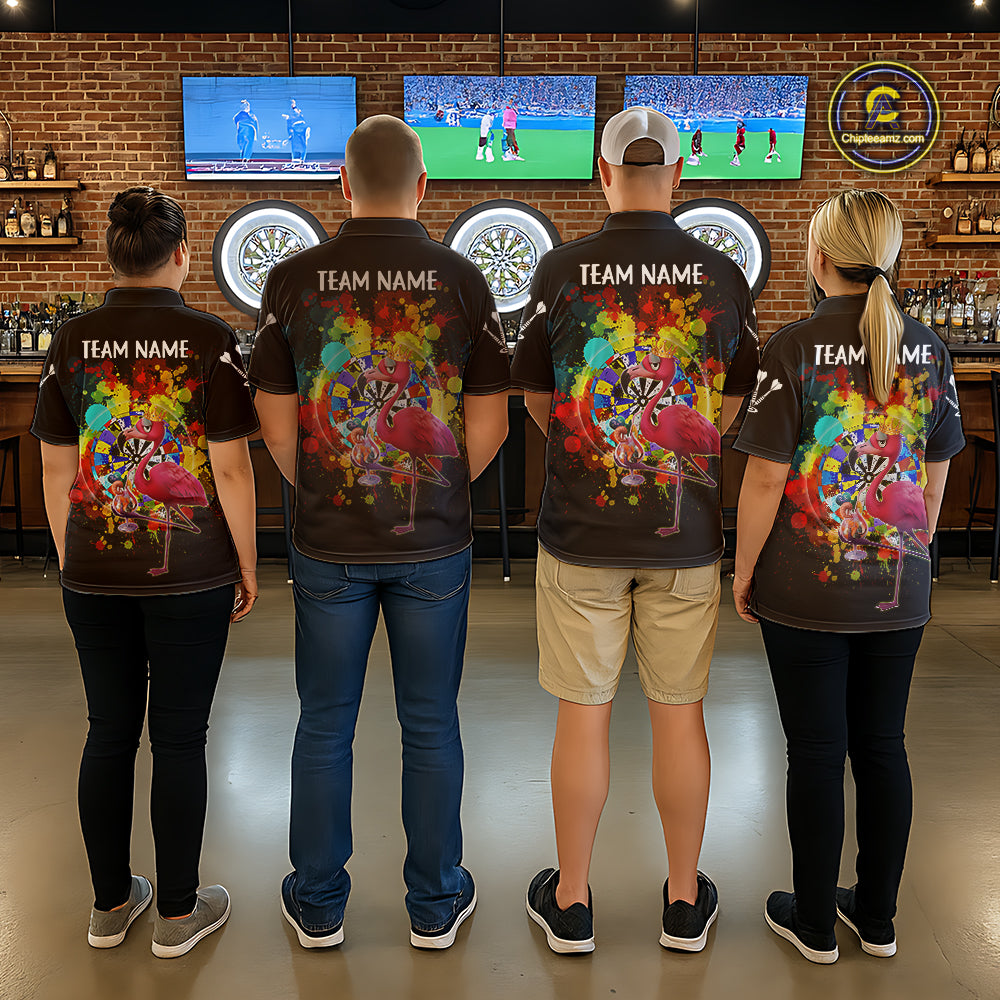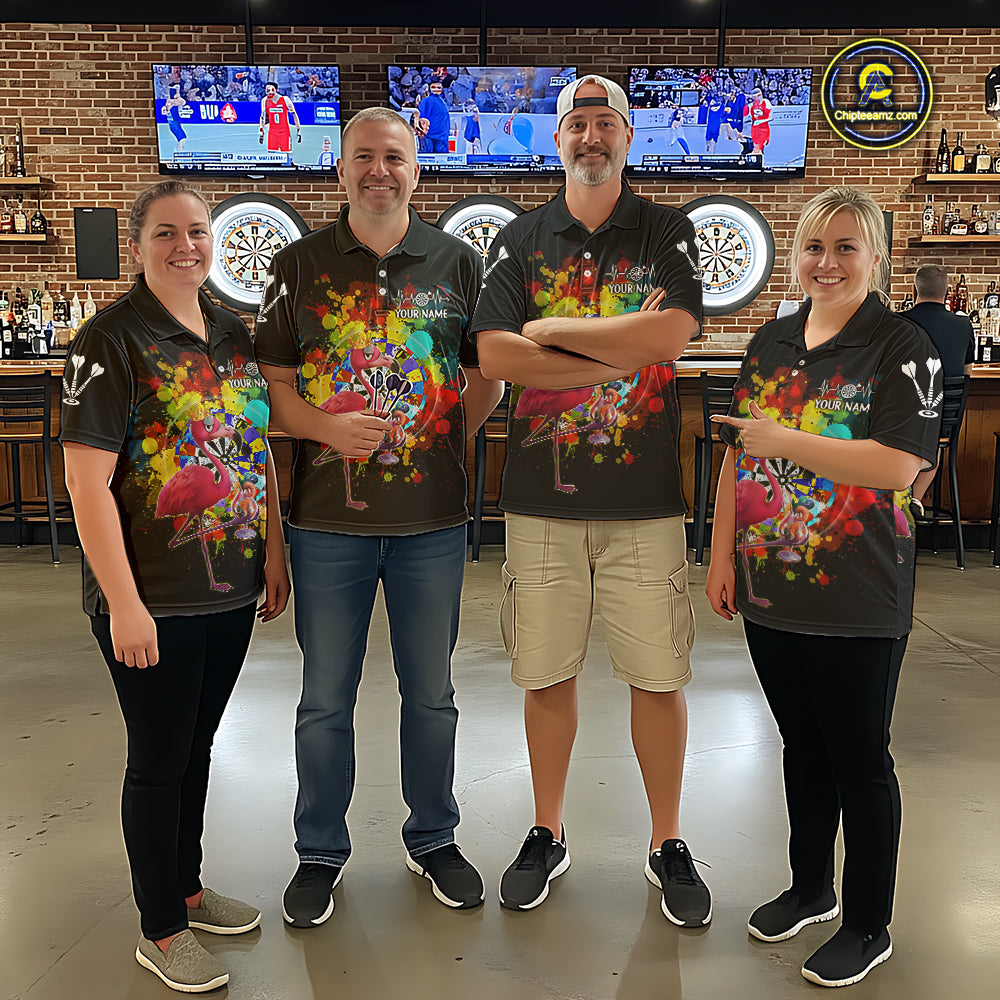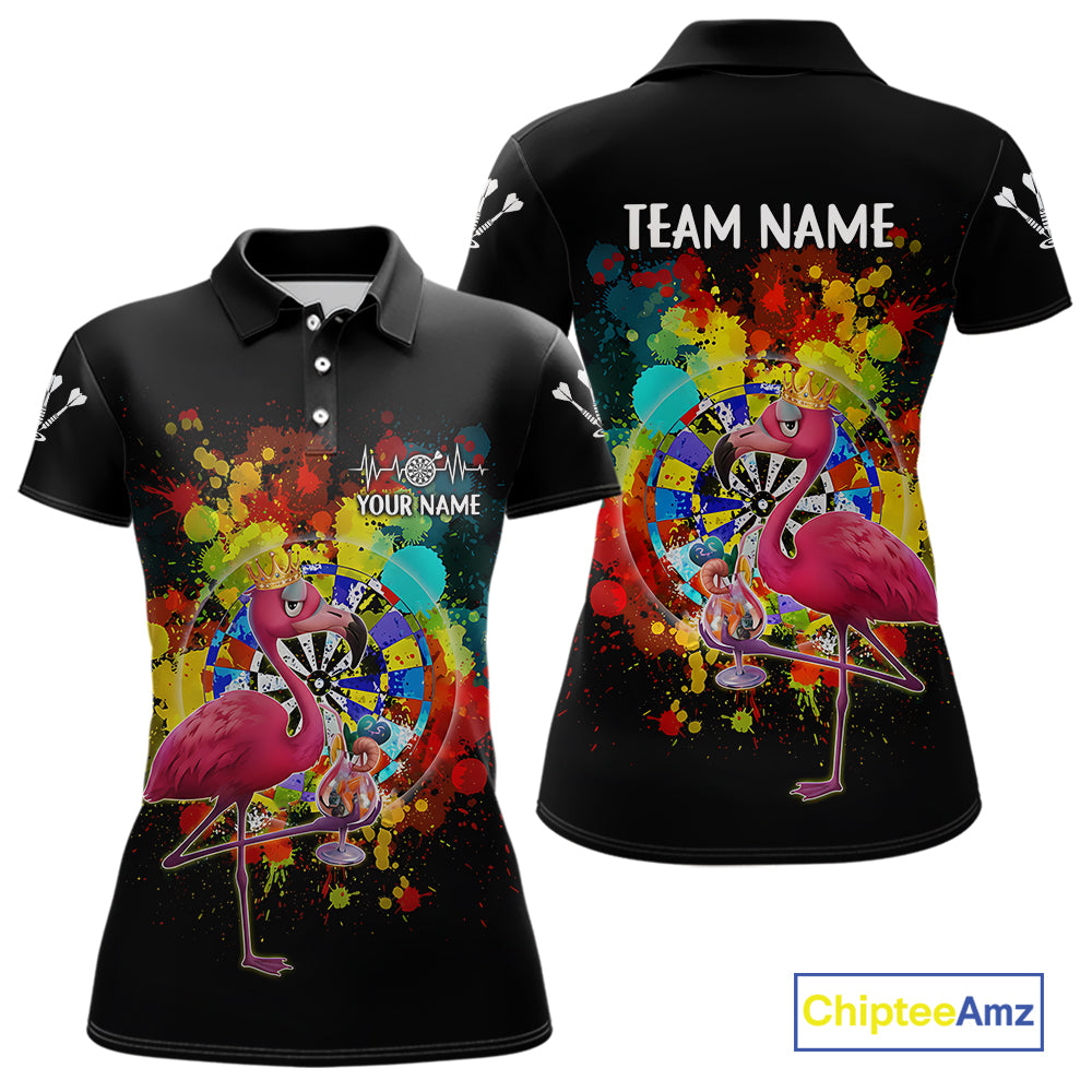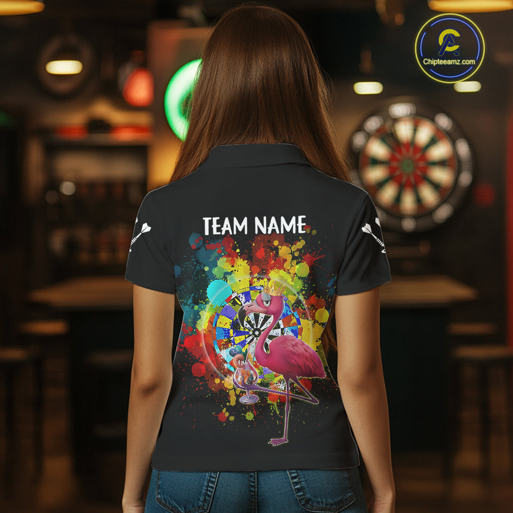 Custom Funny Colorful Crown Flamingo Women Darts Polo League Shirts Splatter Dart Jerseys NYN2209